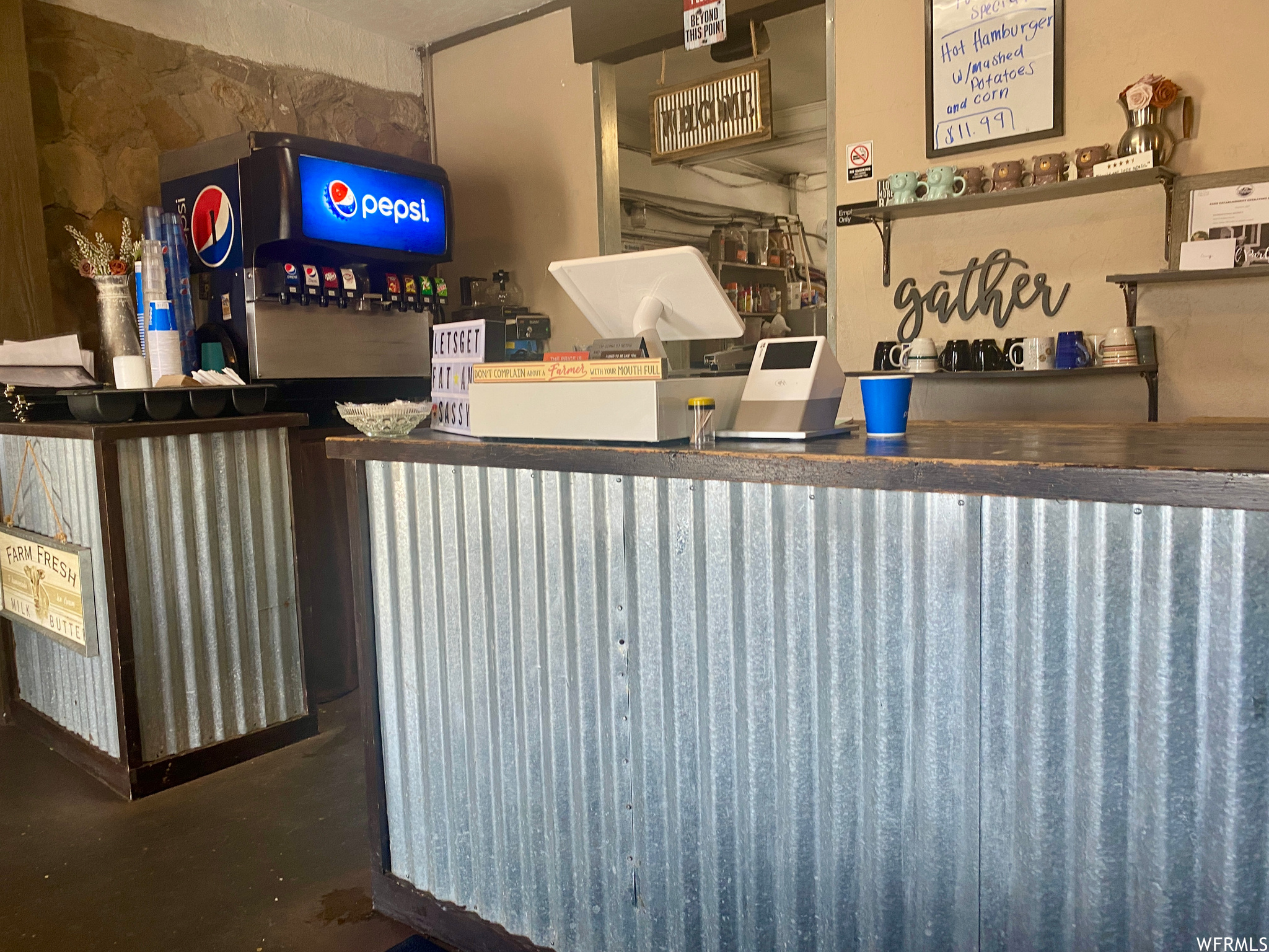 Restaurant in Jensen. Has booths, tables, outdoor dining patio,freezer, refrigerator. Public restrooms. A popular place for dining!