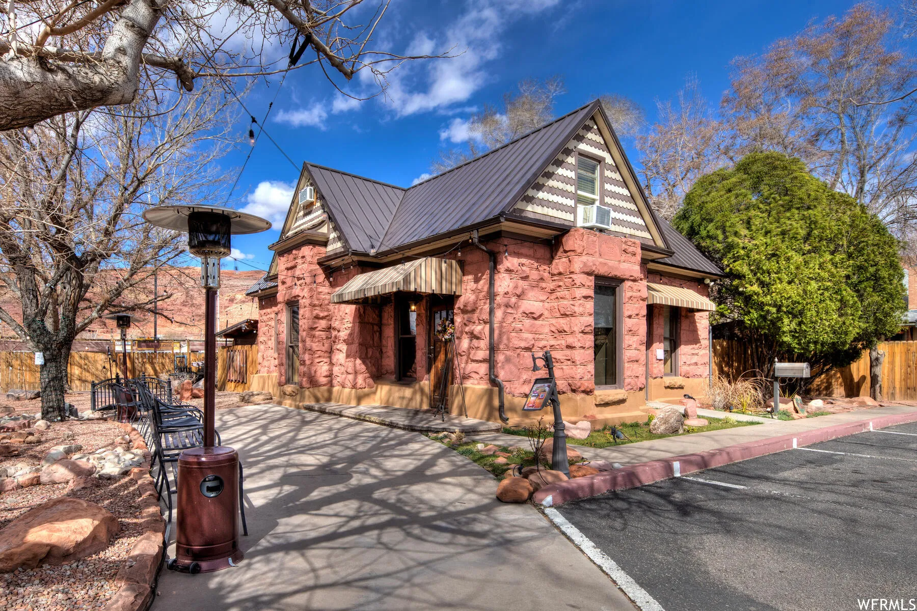 Charming Historic Commercial Building in Downtown Moab! This building features 1900+ square feet and is currently ran as a restaurant. Zoned Moab City C-3, this offers a variety of commercial opportunities. The historic structure is stunning with handmade sandstone bricks, the roof is a new metal roof, and mature beautiful trees wrap the Street Side and create a charming outdoor dining space. Lease in place with the restaurant business.
