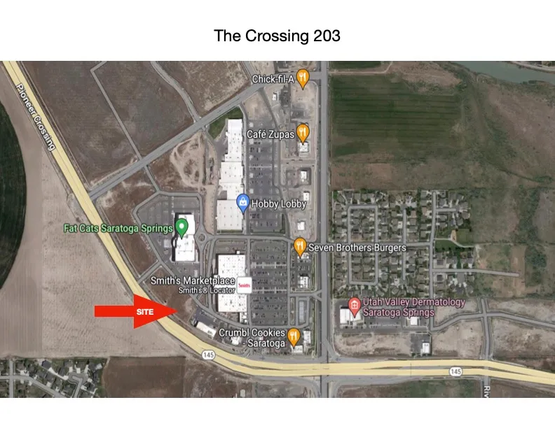 One Suite Remaining! 1,311 SF – Prime location at 166 Pioneer Crossing, Saratoga Springs, UT – Modern retail center with newly constructed facilities – High visibility and exposure for retail tenants – Ample parking for customers and employees – National retail tenants creating a vibrant shopping destination – Excellent signage opportunities for maximum visibility – Flexible lease options tailored to tenant needs – High traffic area in rapidly growing commercial district – Proximity to residential neighborhoods for customer convenience Information is provided as a courtesy. Tenant to verify all information.