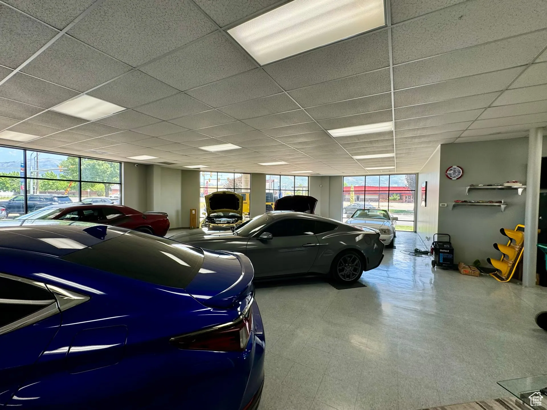 Ideal corner lot in East Davis County with frontage on HWY 193 and Fairfield Drive. The property is currently used as a car lot/office and shop but could easily be transformed into a new retail project. The 9,634 sq. ft. building includes 6,934 sq. ft. of office/showroom space and 2,700 sq. ft. of insulated, heated, and cooled shop space. The shop is easily accessible through three 12′ overhead doors. 15′ ceiling height in shop areas. The large showroom is wrapped in floor-to-ceiling windows. The lot is partially fenced for additional secured parking. Please do not disturb the current tenant. All showings must be scheduled through the listing broker.