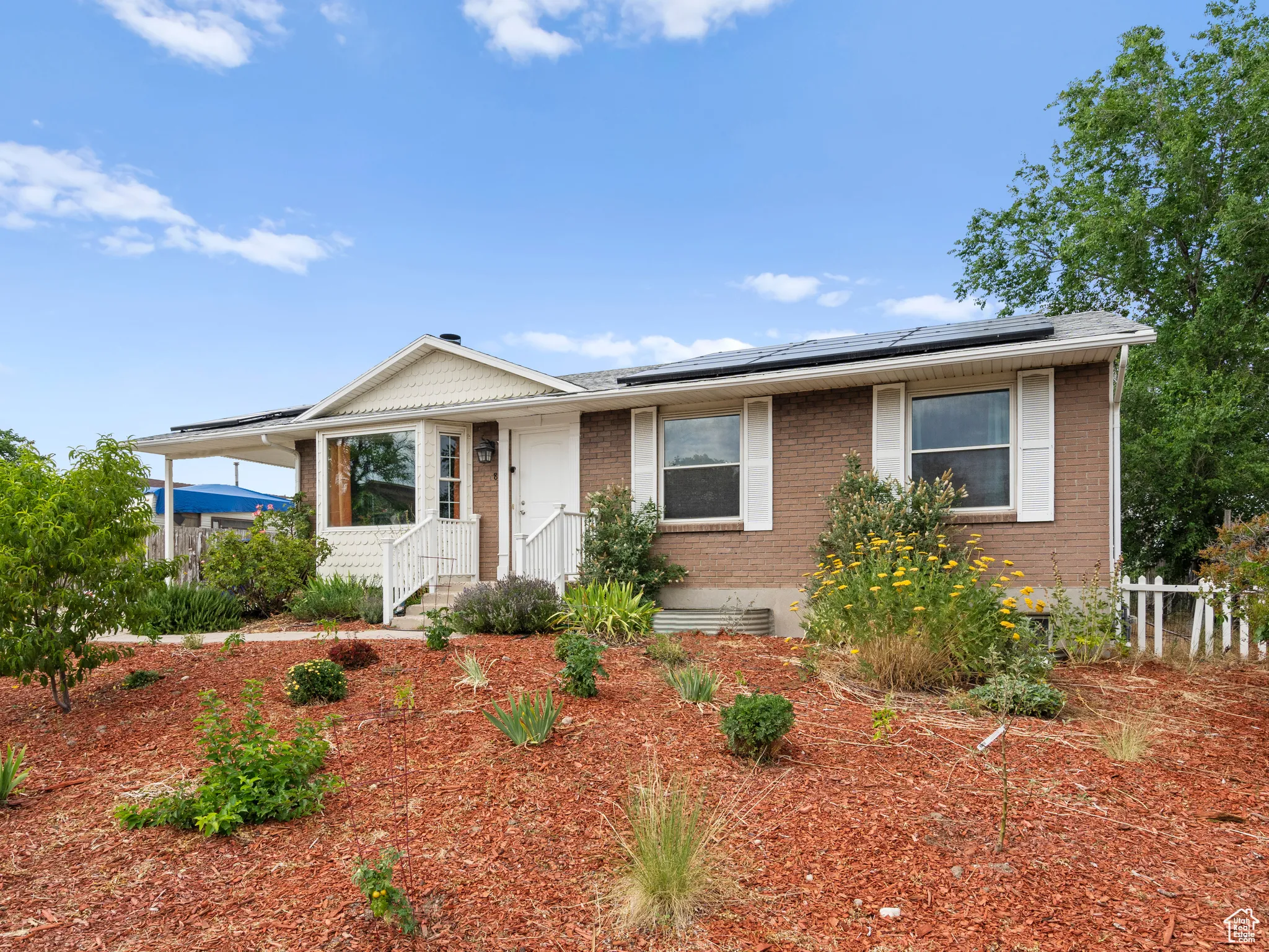 This energy-efficient home features solar panels, a newer roof, new water heater, and a recently replaced AC unit, keeping utility costs low and comfort high. Inside, enjoy granite countertops, large bedrooms, and a walk-in closet. Outside offers a xeriscaped front yard, plus a backyard ready for gardening with five fruit trees and a plant-ready vegetable bed. Stylish, sustainable, and move-in ready!