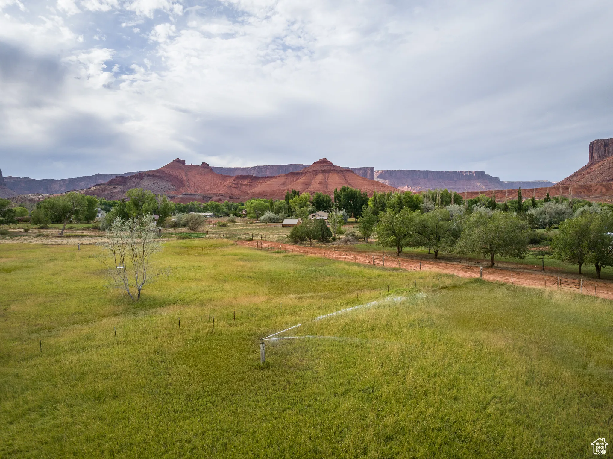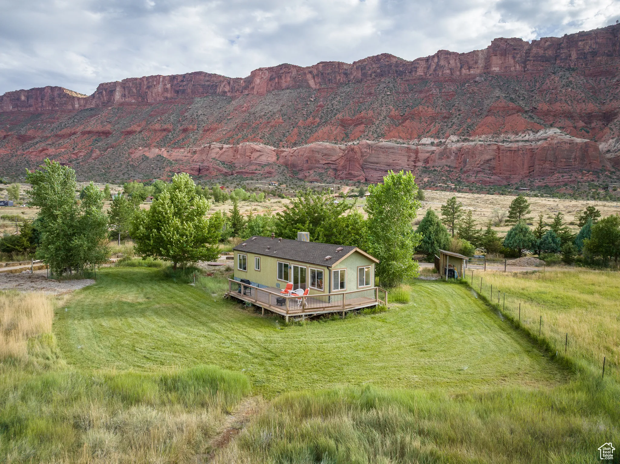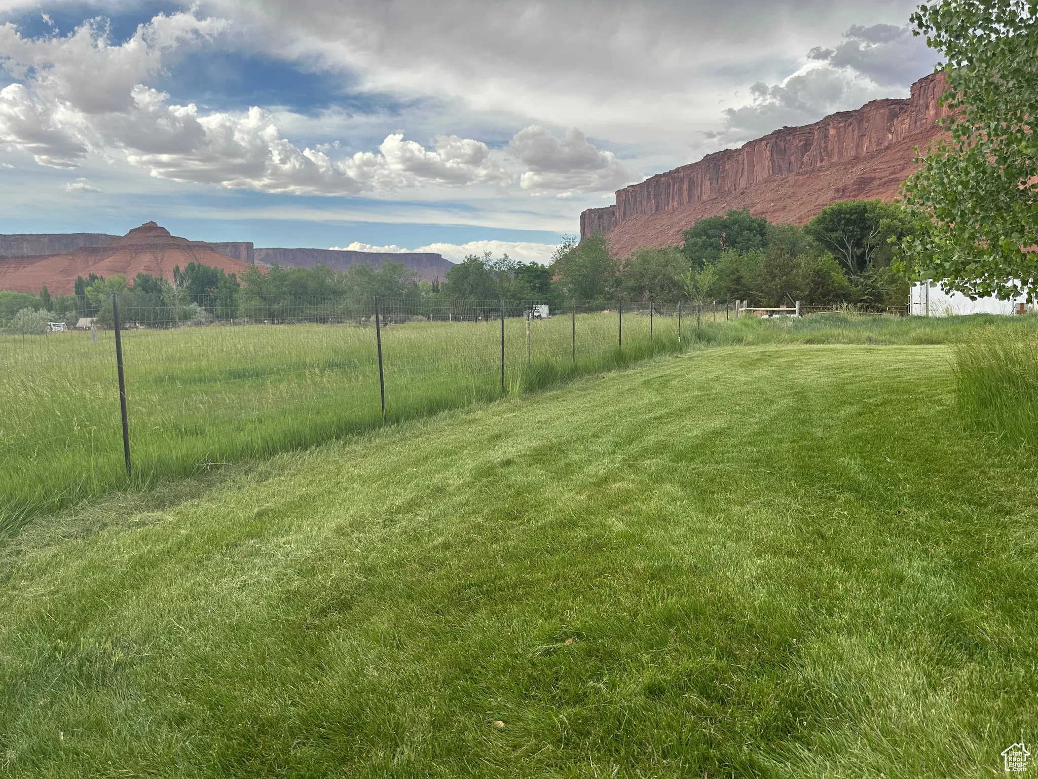 EQUESTRIAN’S DREAM Surrounded by the towering red monuments of Castle Valley, this gem is perfect for your homestead venture. Easy access from Castle Valley Drive near the town library, town hall and fire department, this 5 acre parcel is home to nearly 3 acres of Buffalo Brand Equestrian Mix pasture with two to three separate pastures based on your grazing needs, fenced and ready for horses. Offering a high producing well with a 3 horse power pump supplying 55 gallons per minute of amazing water. The full parcel is fully fenced, 3 sides with wildlife fencing, and has over 1,000 linear feet, 40 feet deep, of mature privacy tree line with an engineered irrigation system for the Ponderosa Pine, Juniper, Red Cedar, Ash, Locust, Big Sage and other trees and shrubs. The northwest side of the property hosts 5 large Freemont Cottonwoods. The property is well positioned with no historic sheet flooding or drainage on site. With a 600 square foot tiny home in place, this property will allow you to stay in comfort and style while you build the home of your dreams – or enjoy it as it is. The home has fiber optic cable, a large trex deck, mature Sycamore and Fruitless Mulberry trees, a beautiful lawn and meadow grasses. Lush green farmland surrounded by 360 degree, long valley views- your homestead awaits! Square footage figures are provided as a courtesy estimate only and were obtained from images. Buyer is advised to obtain an independent measurement.