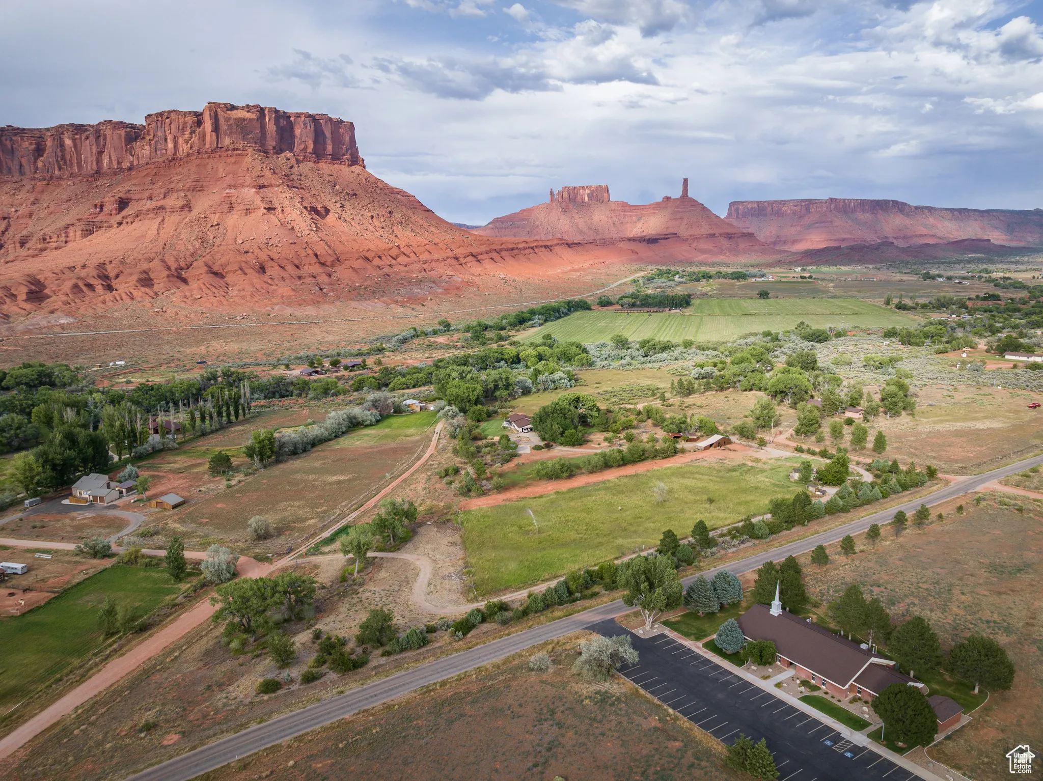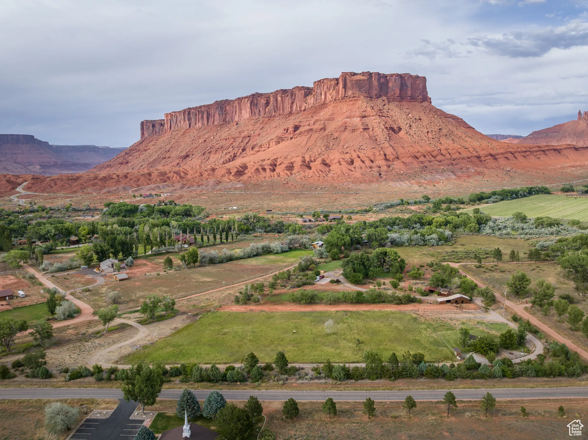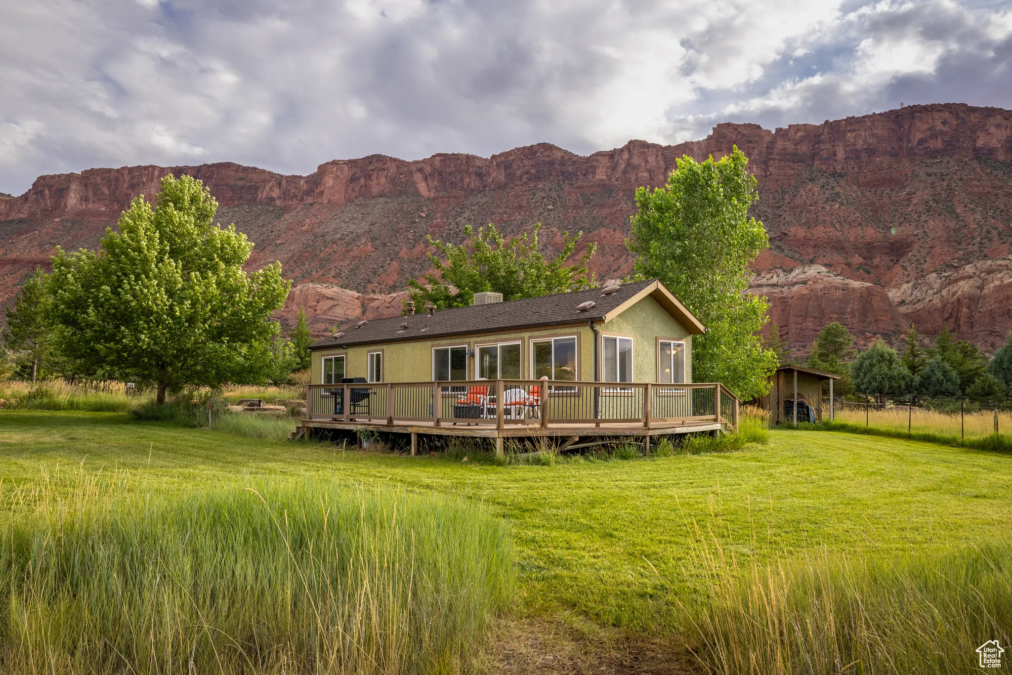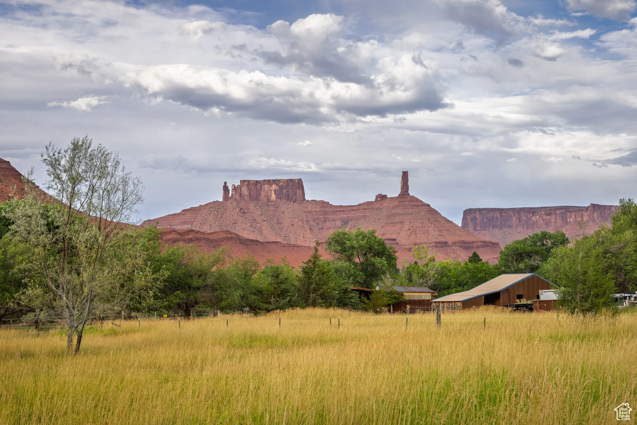 EQUESTRIAN’S DREAM Surrounded by the towering red monuments of Castle Valley, this gem is perfect for your homestead venture. Easy access from Castle Valley Drive near the town library, town hall and fire department, this 5 acre parcel is home to nearly 3 acres of Buffalo Brand Equestrian Mix pasture with two to three separate pastures based on your grazing needs, fenced and ready for horses. Offering a high producing well with a 3 horse power pump supplying 55 gallons per minute of amazing water. The full parcel is fully fenced, 3 sides with wildlife fencing, and has over 1,000 linear feet, 40 feet deep, of mature privacy tree line with an engineered irrigation system for the Ponderosa Pine, Juniper, Red Cedar, Ash, Locust, Big Sage and other trees and shrubs. The northwest side of the property hosts 5 large Freemont Cottonwoods. The property is well positioned with no historic sheet flooding or drainage on site. With a 600 square foot tiny home in place, this property will allow you to stay in comfort and style while you build the home of your dreams – or enjoy it as it is. The home has fiber optic cable, a large trex deck, mature Sycamore and Fruitless Mulberry trees, a beautiful lawn and meadow grasses. Lush green farmland surrounded by 360 degree, long valley views- your homestead awaits! Square footage figures are provided as a courtesy estimate only and were obtained from images. Buyer is advised to obtain an independent measurement.