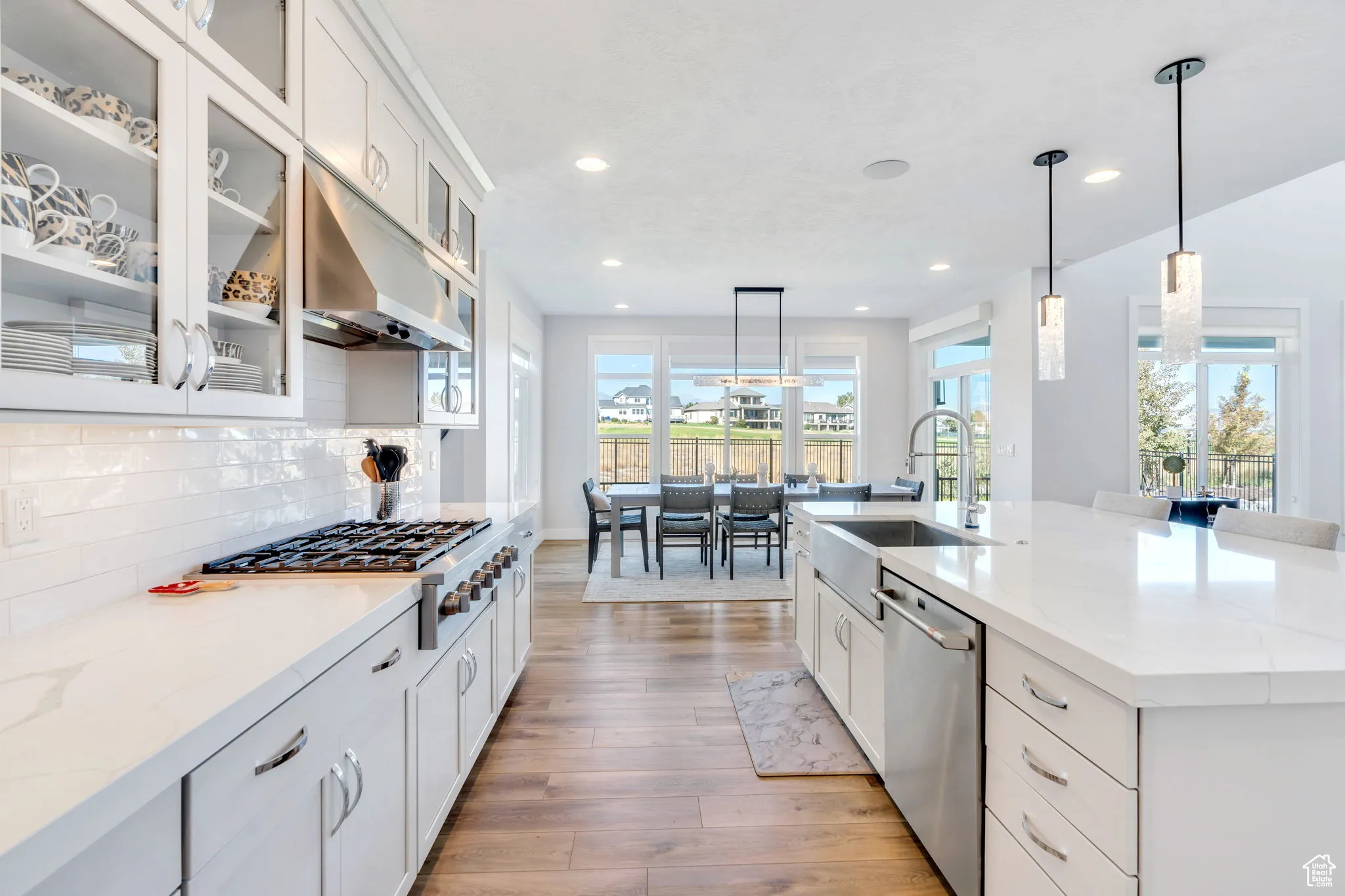 Enjoy luxury living on the 16th hole of Talons Cove golf course! This beautiful, fully finished home has been meticulously maintained and shows like new! Enjoy breathtaking views of the course, Utah Lake, and the surrounding mountains. DOUBLE DEEP (tandem) garage for 3 cars. The bright, open floorplan has a gourmet kitchen and soaring ceilings & windows with tons of natural light! The spacious primary suite has vaulted ceilings and a spa like en-suite bath. Custom shades with dual options–privacy or blackout, and many thoughtful upgrades throughout create the perfect refined & inviting home for you! Resort style community amenities–hot springs swimming pool & spa, private boat launch, parks, trails, historic pavilion, and much more! Sq ft figures provided as a courtesy estimate and were obtained from county records. Buyer is advised to obtain an independent measurement.