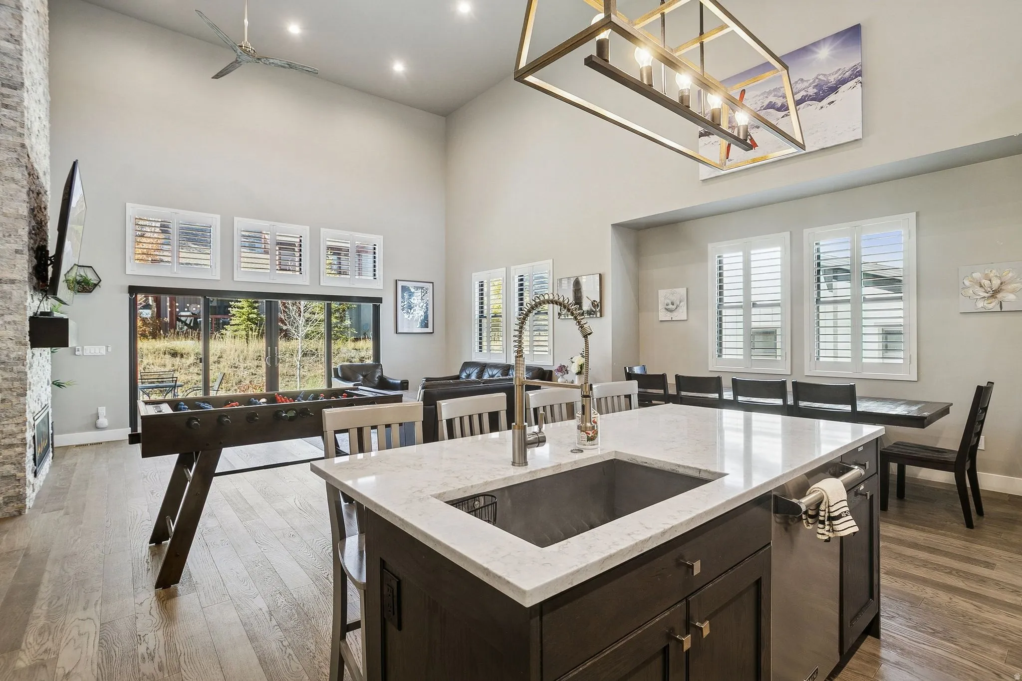 Welcome to your mountain and lakeside retreat in the heart of luxury living. Located just minutes from the new Deer Valley East Village and the picturesque Jordanelle reservoir, this tranquil getaway offers four-season mountain life style at your door step, while not sacrificing convenience. 40 minutes from the Salt Lake International Airport without any stop lights, and 15 minutes to everything Park City has to offer, such as ski resorts, entertainments, restaurants, shopping centers & grocery stores etc. The interior blends contemporary design with the timeless allure of the mountains. Walk into great room, the first thing you will notice is the towering fireplace decorated with modern stone veneer all the way to the ceiling, and then the gourmet kitchen completed with sleek cabinets, large island with quartz countertop, Viking appliances and ample cooking space to entertain your guests. Wood plantation shutters for all windows through the whole house. The master suite on the main level features an oversized walk-in shower with a freestanding soaking tub and electronically controlled shower heads. Upstairs you’ll find another luxurious master suite and two more bedrooms with a Jack-n-Jill bath, offering privacy and space for your guests or family members. Nightly rentals are allowed. All furniture, appliances, decoration and setup are included in this sale, making it move in ready the moment you close. The clubhouse with swimming pool and hot tub and a pickle ball court is expected to complete this winter.