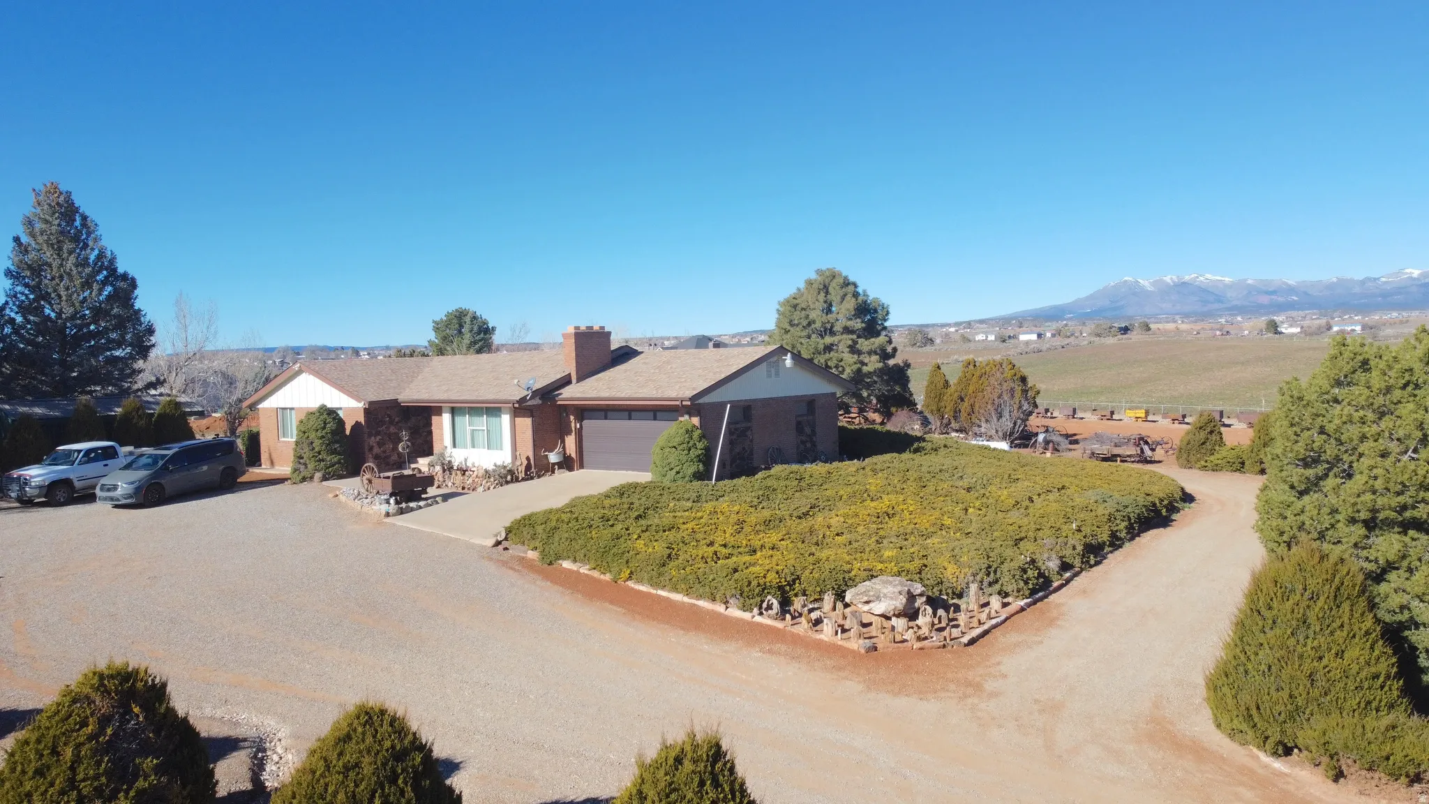 A rare find of beautifully maintained and cared for home on 4 acres of private surroundings with panoramic views of the Blue Mountains, Bears Ears and four states – offering a unique blend of space, comfort, and opportunity. Inside enjoy two kitchens, two fireplaces, central heat & air, and abundant storage throughout including a large bedroom sized cold storage room. Outside property feature highlights include an stunning artistic wagon wheel fence, beautiful duck pond (shared), fruit trees, sun deck, and multiple outbuildings perfect for animals, hobbies, or future expansion. Easy access, quiet country living, and incredible views make this property truly unique!