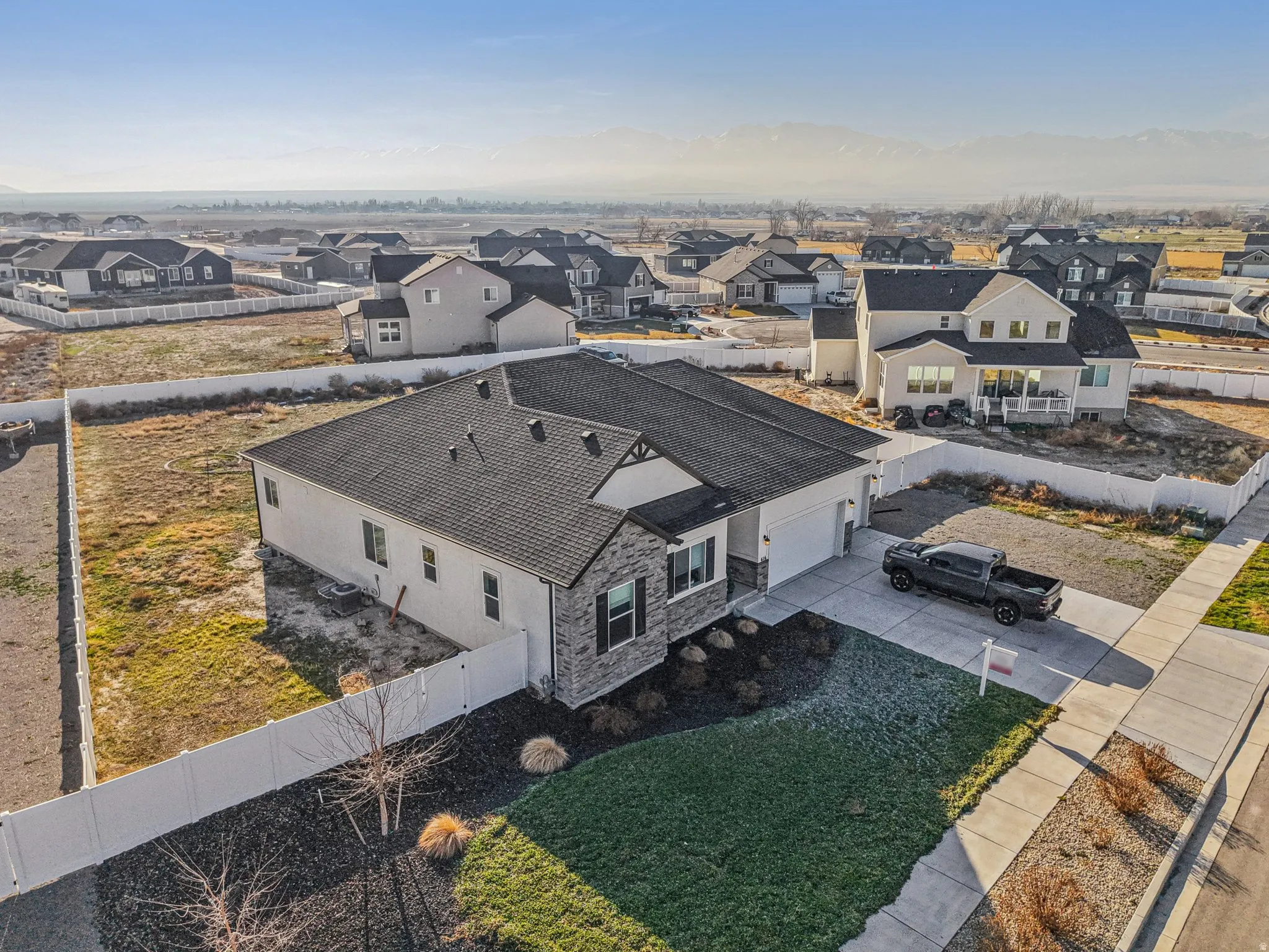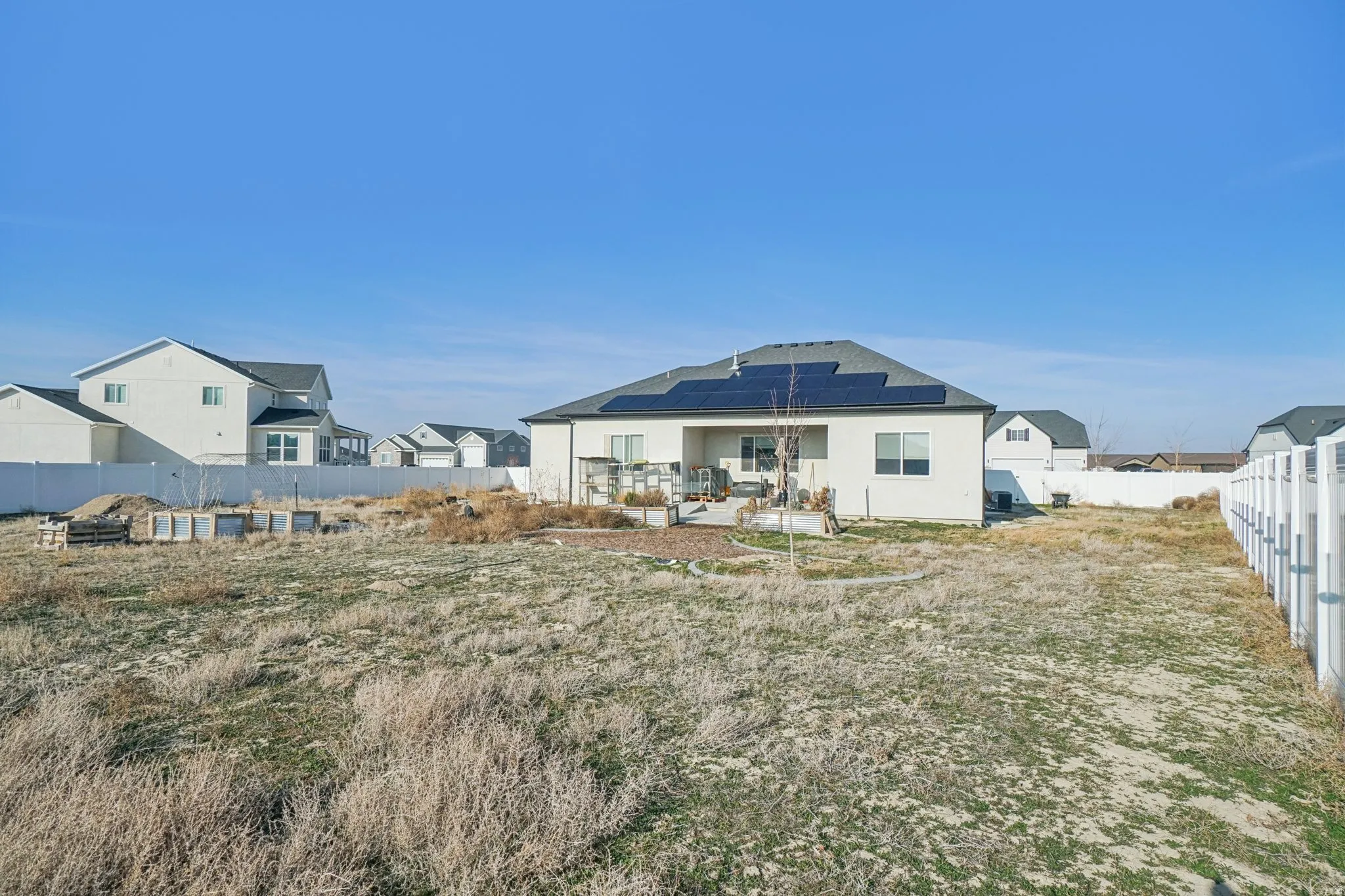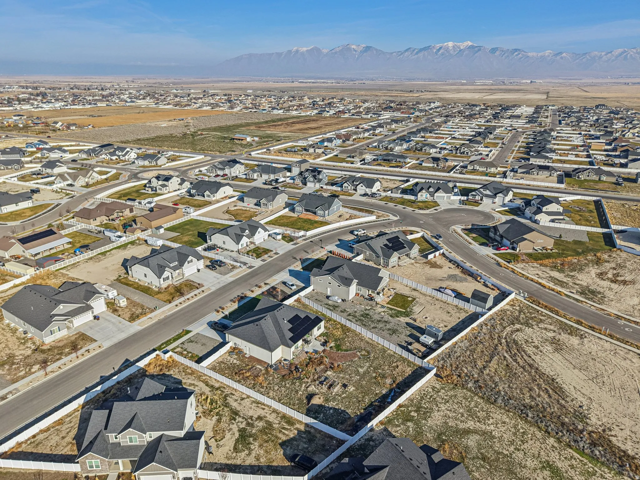 !!! PRICE REDUCED !!! Like-new 2022 rambler on a half-acre lot in a quiet Grantsville neighborhood with beautiful views. This well-maintained single-level home offers 3 bedrooms, 2.5 baths, and 2,393 sq ft of finished main-level living, plus an additional 2,393 sq ft unfinished basement ready for future expansion. Enjoy thoughtful upgrades including quartz countertops, an induction stove, generous pantry, central vacuum, and a jetted tub. The oversized garage can accommodate up to four vehicles if desired. Owned solar panels with backup battery are included free and clear, helping keep utility costs low. The partially landscaped yard features a shade tree, three fruit trees, and raised garden boxes, with plenty of room to customize and grow. A rare opportunity to enjoy newer construction, space, and a peaceful feel, just minutes from town.