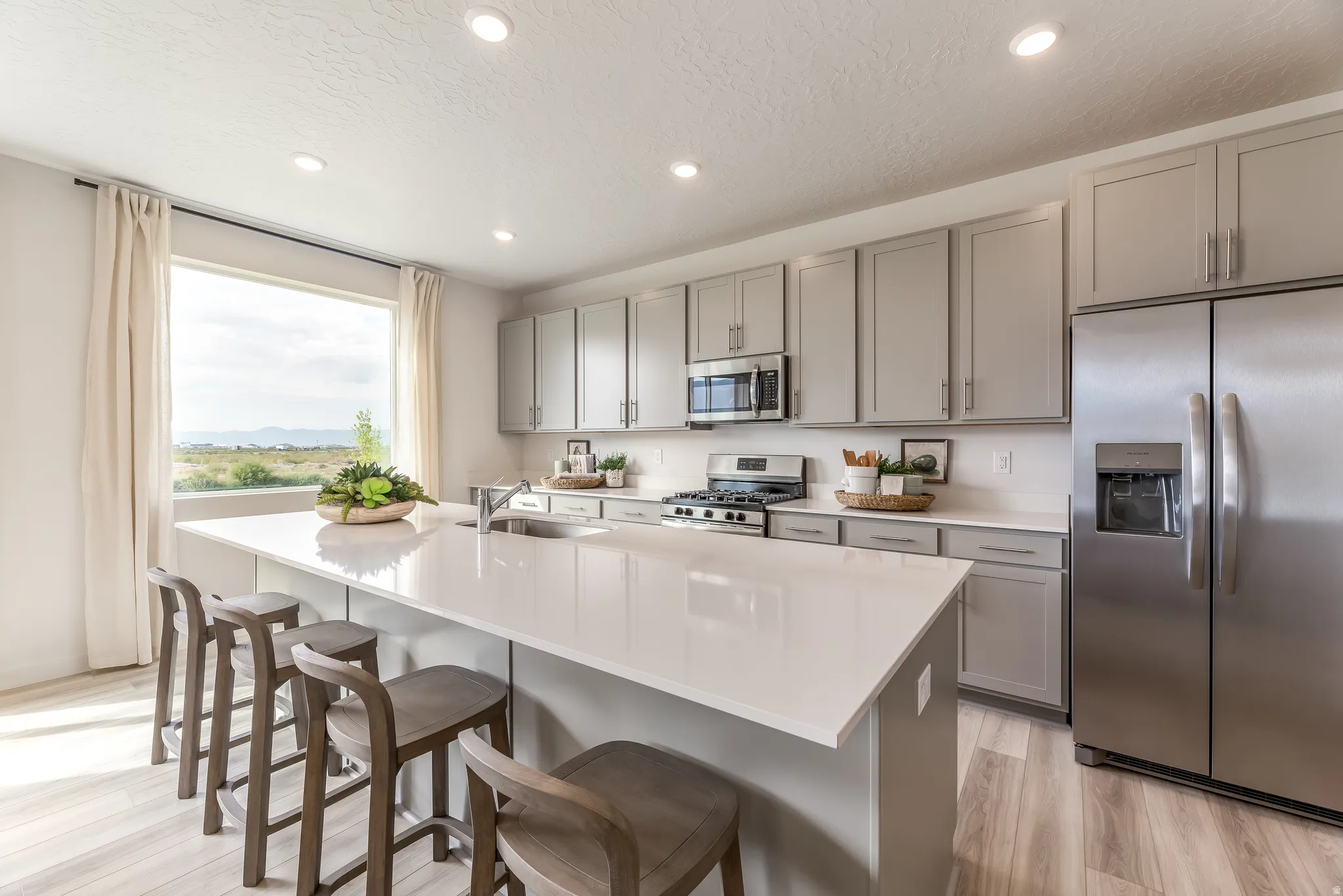 Sienna Hills – 323 – Mesa. Offering incentives up to $5,000, or ask about our rate buydowns, when financing with our preferred lender. Estimated completion in May. This home includes 4 bedrooms, 2.5 bathrooms, 2 car garage and a full unfinished basement. The main floor offers a family room, mudroom, dining area and a kitchen that boasts grey cabinets and cream quartz countertops. Upstairs has 4 bedrooms, including the luxurious owner’s suite with walk-in closet, a convenient laundry room, and master bath suite. Square footage figures are provided as a courtesy estimate only and were obtained from builder. Buyer is advised to obtain an independent measurement. Interior photos are of same style of home but not actual home. Rendering is for illustrative purposes only