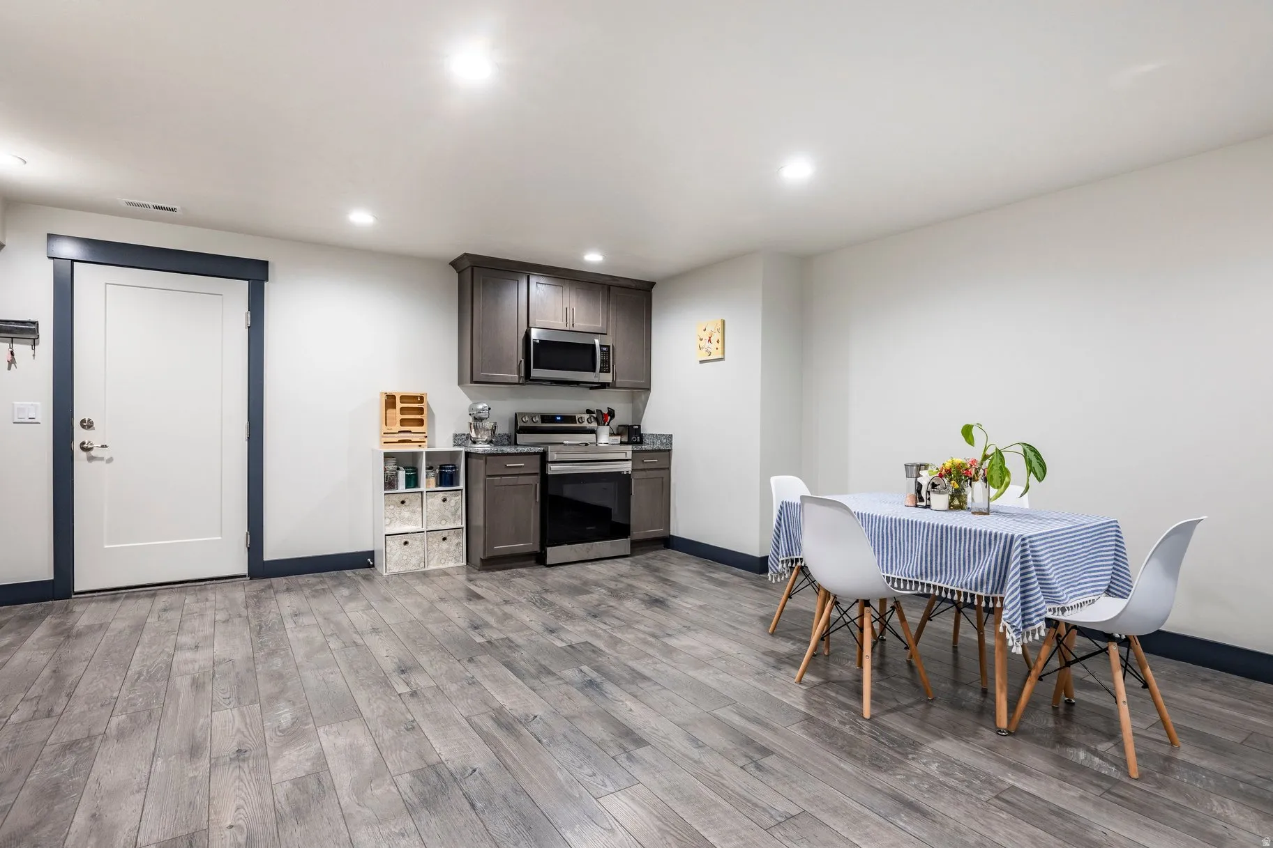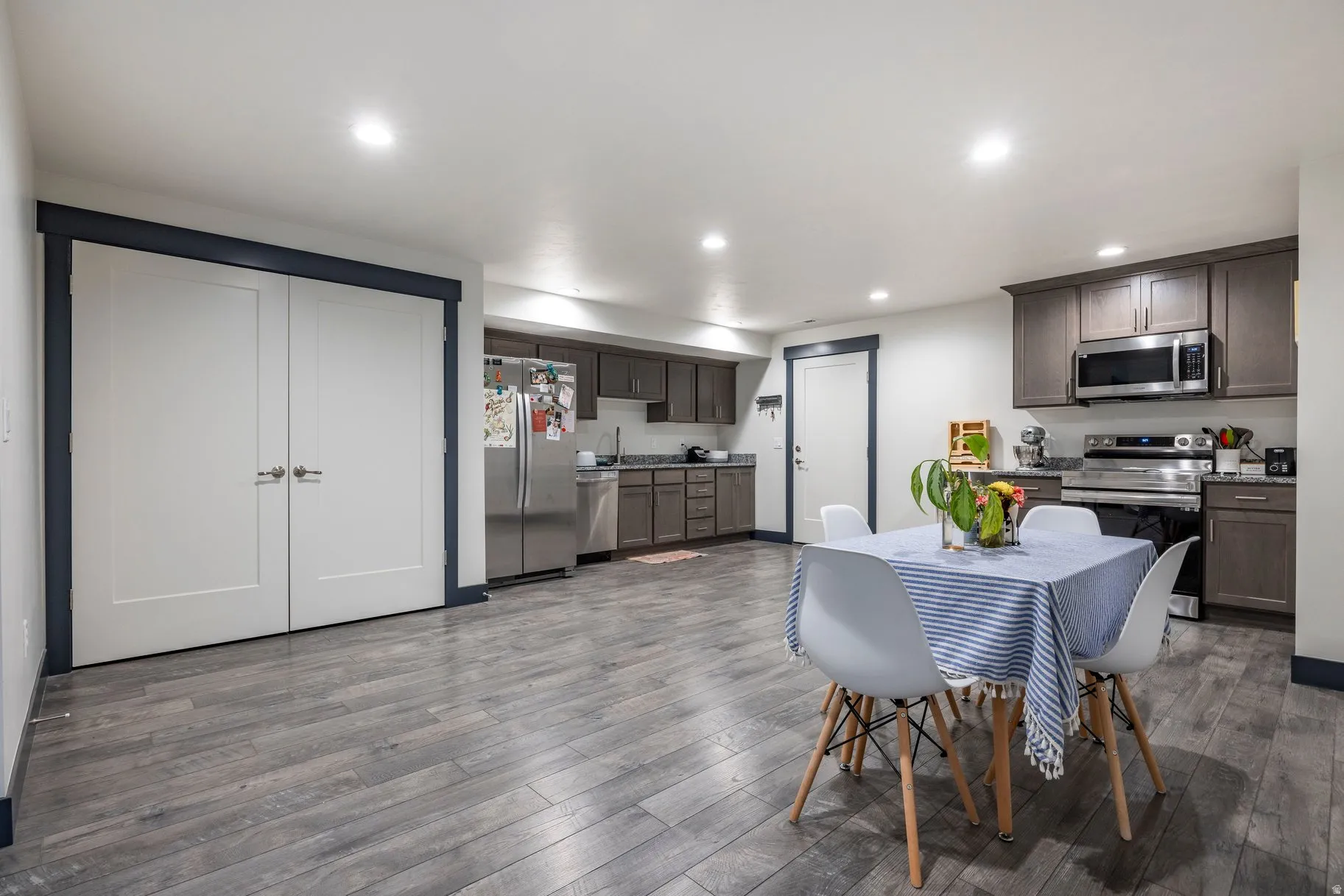 This thoughtfully designed, new-construction rambler is ideally located in a neighborhood with mature trees and stately homes. Enjoy the proximity to Mick Riley Golf Course, County Ice Center, IHC Hospital, shopping, restaurants, freeway access, and many parks. Completed early in 2023, this home features a primary bedroom with en-suite on both levels, an approved rental (ADU) on the lower level with a separate entrance, energy-efficient appliances in the gourmet kitchens, solar panels with a battery backup, epoxy floors, and an electric car charger in the large three-car garage (50 AMP), HVAC split for the lower level and main level, as well as a radon mitigation system.