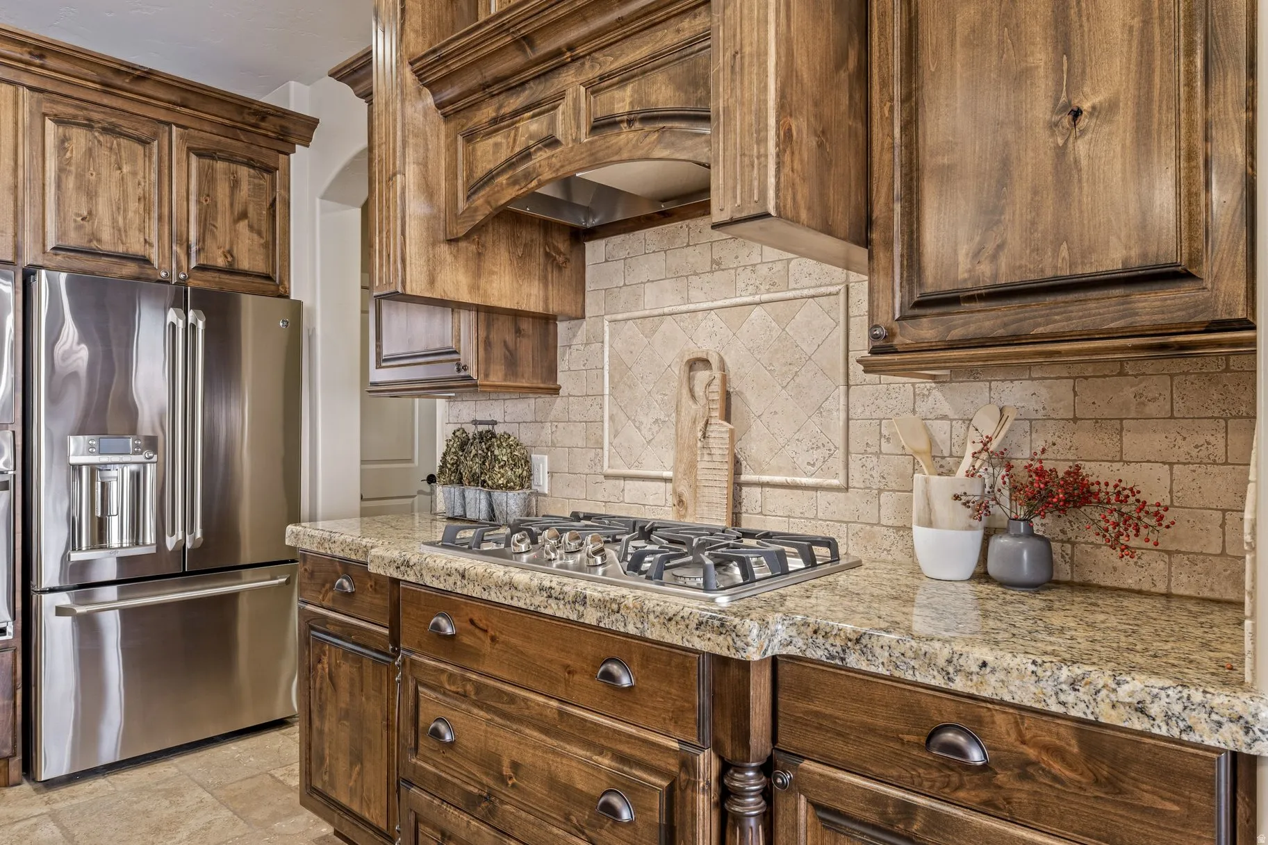 Enjoy beautiful Red Mountain views from the covered patio or courtyard of this immaculate 4-bed, 3-bath home. It features a gourmet kitchen with premium cabinetry and double-thick granite, a water softener, central vacuum, monitored security system, surround sound (including patio speakers), Control4 smart-home technology, and added R-50 insulation. The newly painted exterior, xeriscape landscaping, and epoxy-coated 4-car garage-with abundant built-in storage-ensure low-maintenance living. No HOA and space to add a pool and RV pad. There are select furnishings available for purchase. This property blends luxury, functionality, and flexibility in one exceptional package!