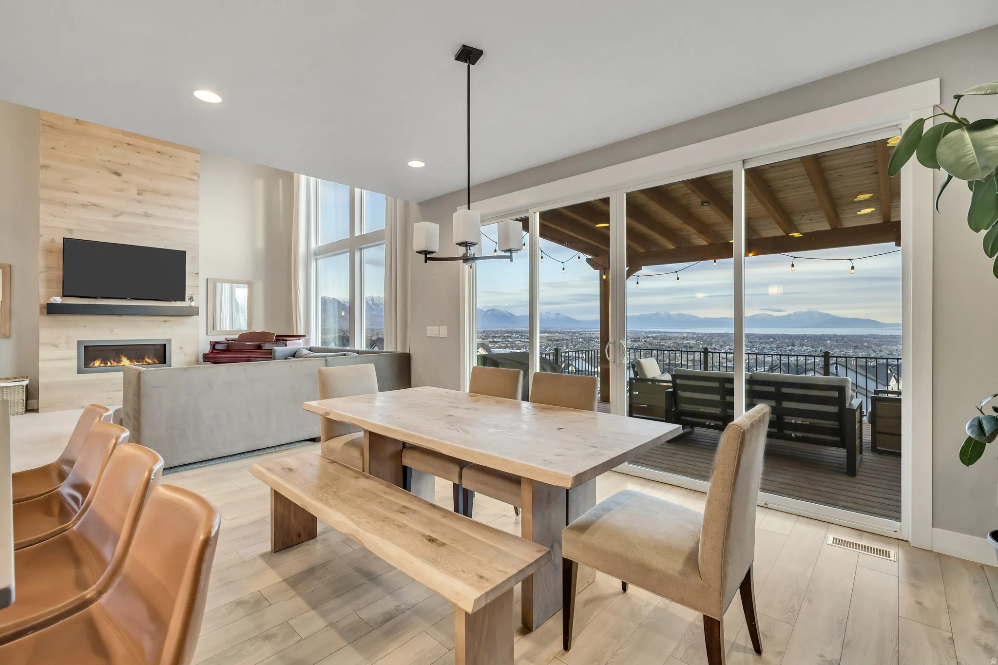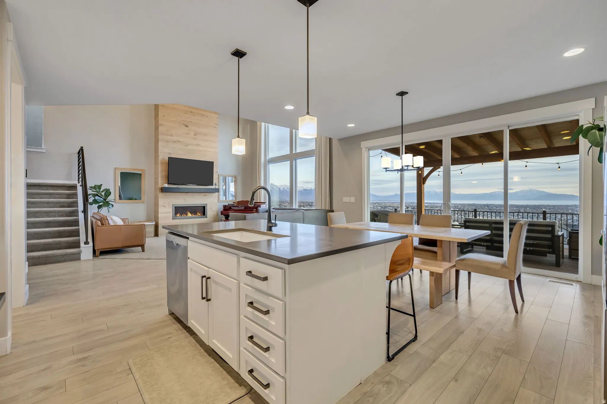 VIEWS? This home delivers stunning unobstructed valley views from every level, complemented by two expansive decks that are perfect for entertaining or unwinding in the evenings while soaking in the hot tub. Built in 2016, it offers a thoughtful blend of modern design and comfortable living. The main floor features an open, airy layout with vaulted ceilings and oversized windows that fill the space with natural light, along with a private office, mudroom, and spacious mudroom area and walk-in laundry room. Upstairs, the generous primary suite includes a luxurious ensuite bathroom with dual vanities, a separate tub and shower, and a walk-in closet. The open walk-out basement provides additional living space with seamless access to the lower deck and hot tub area. Conveniently located in the heart of Silicon Slopes with quick access to shopping, dining, and commuter routes, this home combines functionality, modern finishes, and unforgettable views in one exceptional package. Buyer Buyer’s Agent to verify all information.