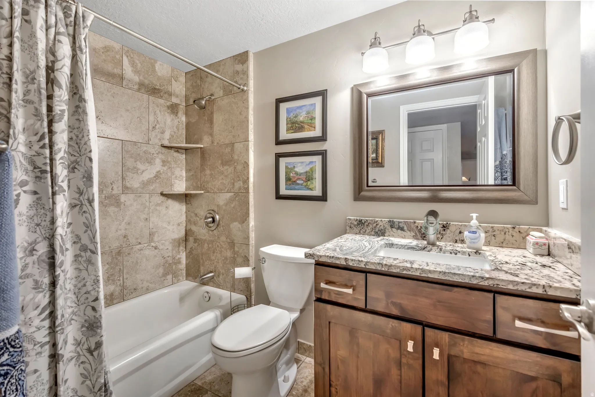 Step into this beautiful move-in-ready home located in a private gated community. Every detail has been thoughtfully upgraded, featuring stunning granite countertops, rich stained knotty alder cabinetry with soft-close drawers, a stylish tile backsplash, updated light fixtures, a Nest thermostat, newer carpet and tile flooring, and elegant tile surrounds in the bathrooms. The finished lower level offers recessed wall displays, a spacious media room, a comfortable family room, two additional bedrooms, and a full bathroom-perfect for entertaining or relaxing. Out back, enjoy breathtaking views of the Wasatch mountains, creating a peaceful and scenic backdrop to your home. Roof and water heater have also recently been replaced. Schedule your showing today-homes like this don’t stay on the market for long! Square footage figures are provided as a courtesy estimate only and were obtained from the county records. Buyer is advised to obtain an independent measurement.
