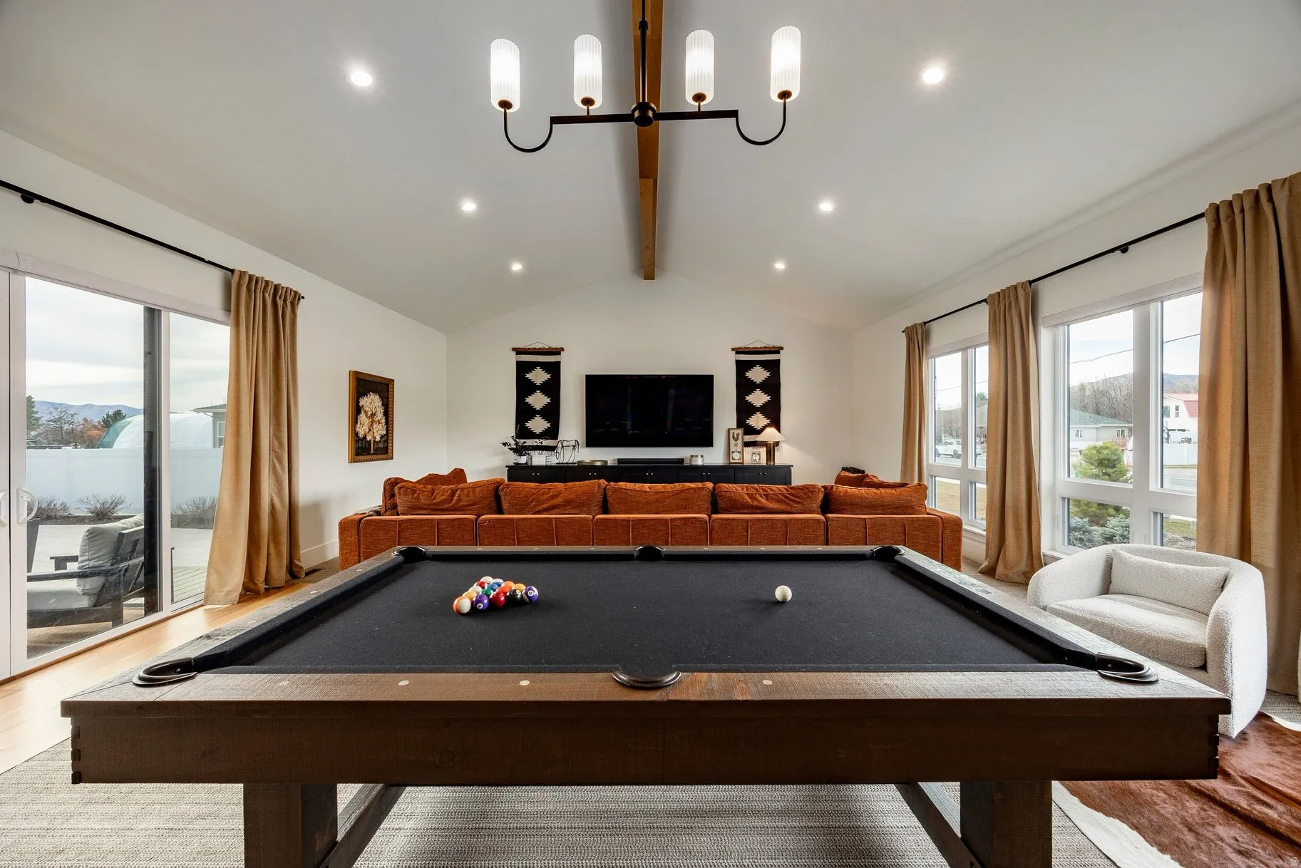 Recently repositioned to align with current market demand, this exceptional 2023 built estate presents a rare opportunity to own one of Highland’s most compelling luxury properties. With limited inventory at this level, it now represents one of the strongest values in the market. Set on 1.25 acres, thisresort-styleestate is designed for both elevated everyday living and effortless entertaining, featuring a pool, sports court, expansive outdoor living, and stunning mountain views of Lone Peak and Timpanogos. The heart of the home is a grand great room with 10-foot sliding glass doors that open to a Trex deck overlooking the pool, creating a seamless indoor-outdoor flow. A statement fireplace anchors the space, while the chef’s kitchen showcases walnut cabinetry, a 48″ Thermador range with steam oven, 36″ Thermador refrigerator and freezer, dual ice makers, and refined designer finishes throughout. Adjacent to the great room, a spacious entertainment lounge features a 90″ TV, pool table, and additional sliding doors opening directly to the deck and pool. Integrated indoor outdoor audio enhances the home’s entertaining capabilities. The primary suite is a private retreat featuring a sitting lounge, fireplace, and spa-inspired bath with a true Finnish sauna built with Finnleo materials and stove, offering steam capability for an authentic experience. Designed with flexibility in mind, the lower level includes a home office, kitchenette, theater room with Control4 integration, pilates yoga studio, and abundant storage, including cold storage. Each basement bedroom features a private en suite bath with tiled showers, offering comfort and privacy for guests. An outdoor gym provides versatile potential as an office, golf simulator, or additional recreation space. The backyard is a true private retreat. A 30-foot pergola connects the fully lit tennis court, complete with pickleball lines and dual adjustable basketball hoops to the pool, fire feature, and water feature, creating a cohesive space for multiple activities. Additional features include a four-car garage, separate utility/toy garage, RV storage (70′ x 60′), and generous guest parking (6 to 7 spaces). Horse property potential is available (see attachments). Enjoy direct, private access to the 17-mileMurdock Trail, offering unmatched recreation right from your backyard. Discreet from the street and extraordinary beyond the front door, this is a rare Highland offering.