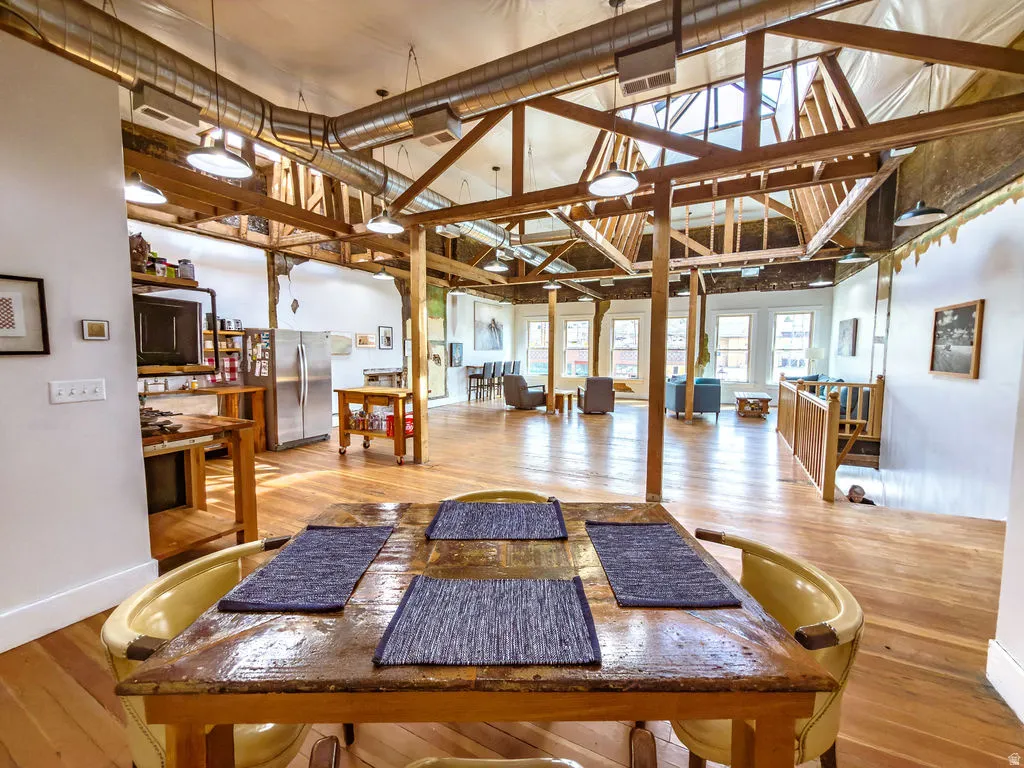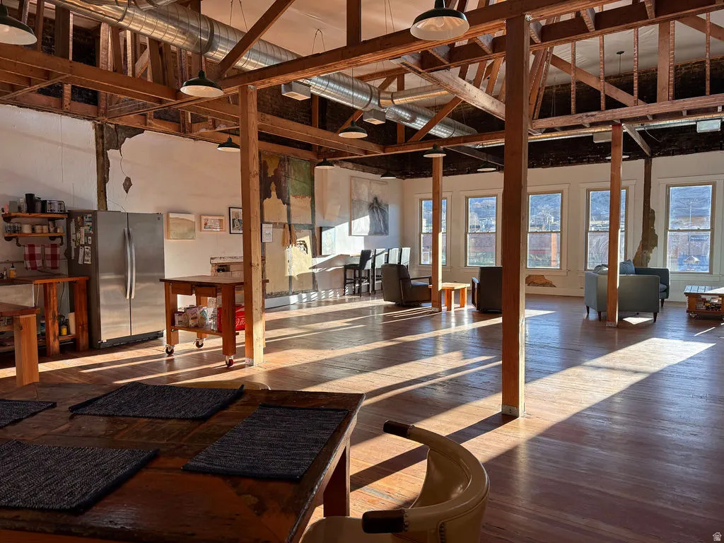 Discover this beautifully restored tri-level building on historic Helper Main Street, where thoughtful artistry meets modern functionality. This fully renovated space preserves its rich history, ensuring each detail reflects both sophistication and intention. The main level offers over 3,000 square feet of open space, showcasing original red douglas fir flooring, 20-foot ceilings, a private bathroom, and front and back entrances, making it ideal for a gallery or retail space. Above, the living quarters feature a private entrance, a loft-style living area and stunning views. This level includes five skylights, three bathrooms, four bedrooms-two of which are en suites. Enjoy the balcony off the primary bedroom and private entrance facing the Price River and views of balance rock. All countertops throughout are hand crafted from the building’s reclaimed materials. You’ll also find ample gallery walls perfect for displaying art. Additionally, there is the convenience of a laundry room. The lower level, with its own entrance, includes a kitchen, laundry, 3/4 bath, and plenty of open space inviting your creativity. This historic building has all-new electrical and plumbing systems, along with modern windows, lighting, and new roof. Each floor is thoughtfully zoned with its own air conditioning and heating units, ensuring both comfort and efficiency throughout the property. Enjoy sweeping views of the Book Cliffs and the nearby river.. This versatile space serves as an inspired studio, gallery, and unique living area, where every corner tells a story. Square footage figures are provided as a courtesy estimate only and were obtained from County Records. Buyer is advised to obtain an independent measurement.