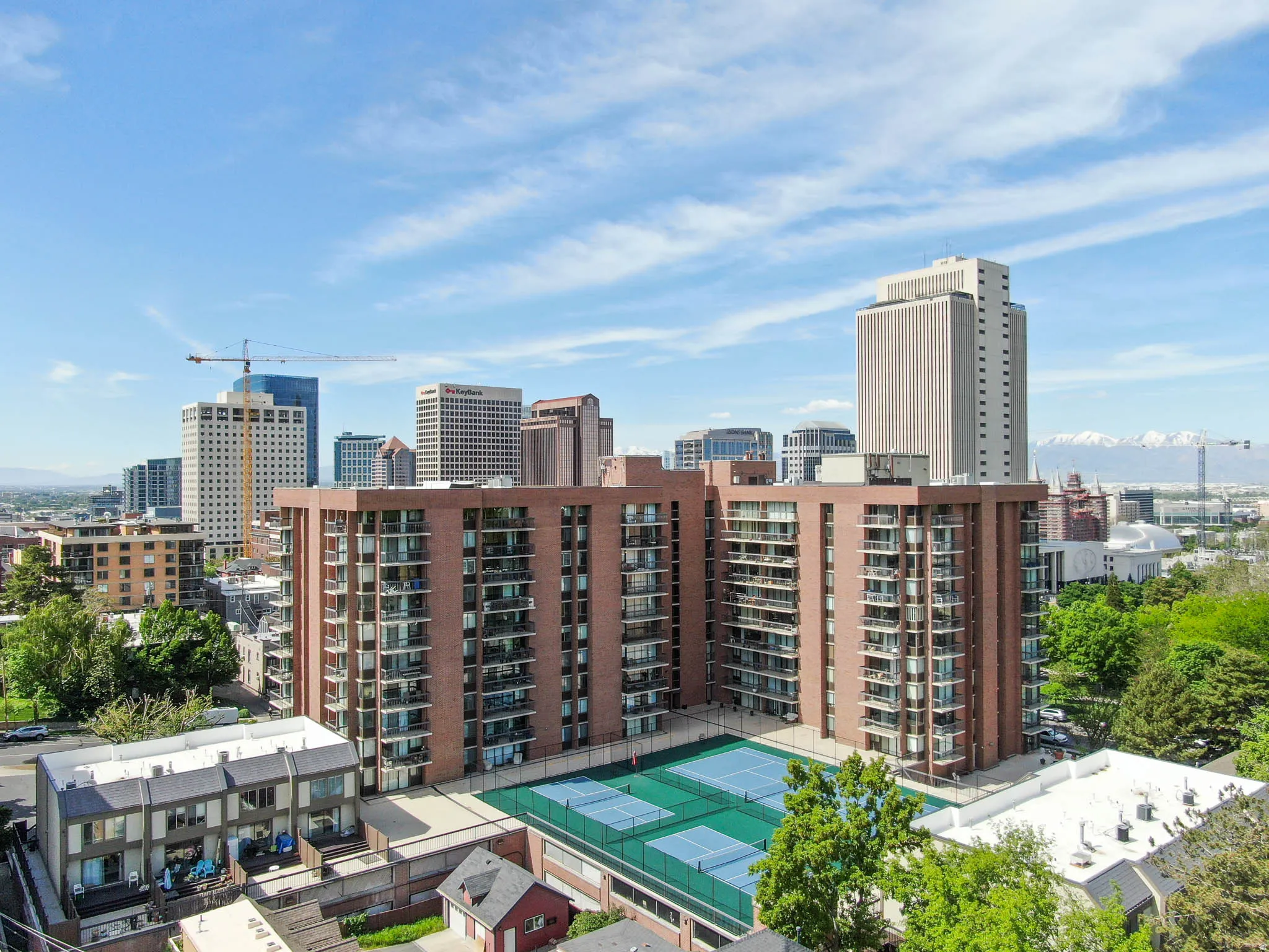Where the Avenues Meet Downtown – And Everything Meets Perfection Perched on the fourth floor of one of Salt Lake’s most coveted addresses, this exquisitely maintained and updated condo delivers something increasingly rare: genuine quiet in the heart of it all. Solid construction, thoughtful design, and an unbeatable location where world-class hiking, TRAX, acclaimed restaurants, vibrant nightlife, and neighborhood coffee shops are all steps from your door – with the best of Downtown SLC’s arts, entertainment, and culture just around the corner. This condo lives like you need it to – generous, open, and gracious – with a sprawling adjacent courtyard that invites kids to roam freely while you unwind on your private patio. Custom wood shutters cast a warm glow beside the gas fireplace and handsome bookcase, creating the kind of cozy elegance that makes leaving feel optional. Your wellness life thrives here too. Step outside your patio door to the pickleball courts – no stairs, no elevator. Swim or unwind in the stunning indoor pool and sauna, yours to enjoy every season of the year. And the HOA? It covers ALL utilities – exceptionally well-managed, meticulously maintained, and a true reflection of the pride this community takes in itself. This is the one you’ve been waiting for. Come feel it for yourself.