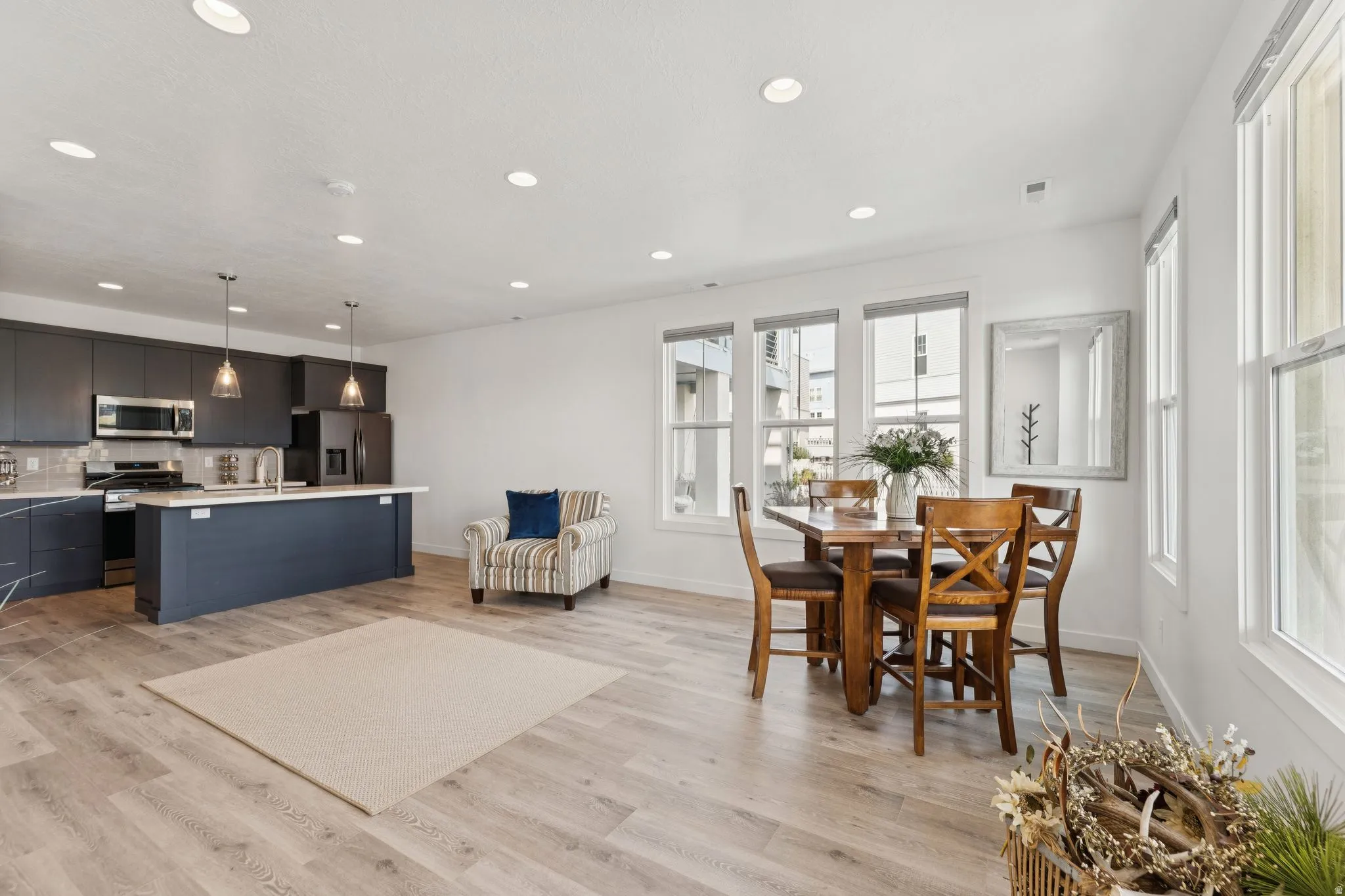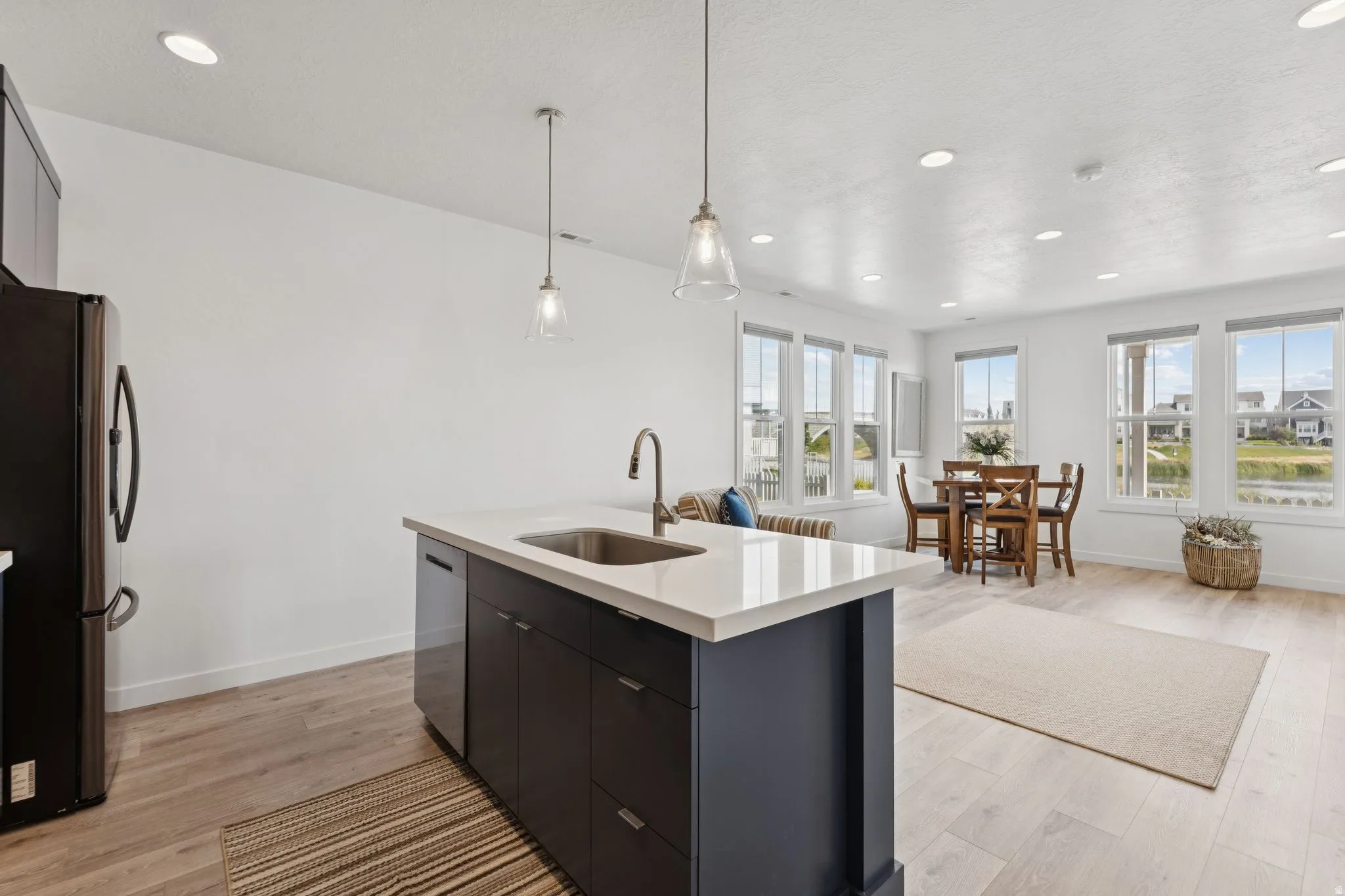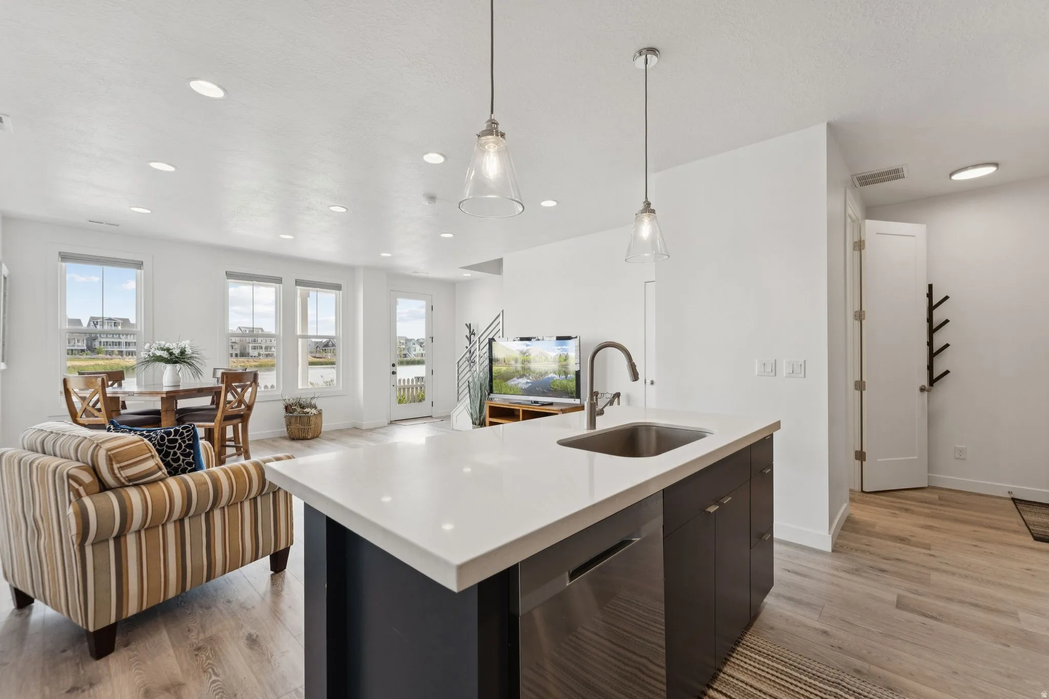 Highly sought-after WATERFRONT living in Daybreak! This like-new 3 bedroom, 2.5 bathroom townhome combines modern comfort with unbeatable views and location. The highlight of this home is the MASSIVE rooftop deck, perfect for entertaining or relaxing while taking in unobstructed 180-degree views of Oquirrh Lake and the Wasatch Mountains. Inside, you’ll find an open and inviting floor plan with stylish finishes throughout. The spacious primary suite features abundant natural light, a large walk-in closet and a serene atmosphere to unwind. Just steps away from SoDa Row and only minutes to Downtown Daybreak and The Ballpark at America First Square, this home puts you in the center of it all while maintaining a peaceful lakeside retreat. Don’t miss your chance to enjoy the best of Daybreak’s waterfront lifestyle!
