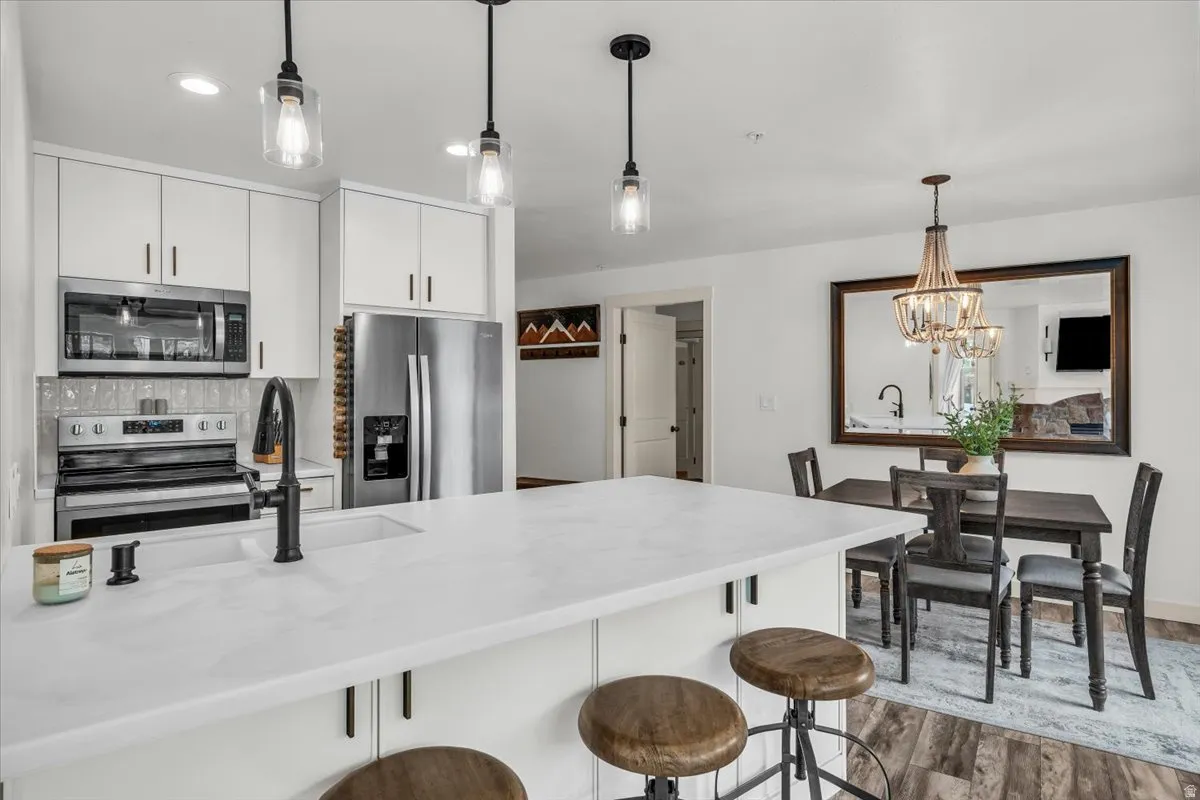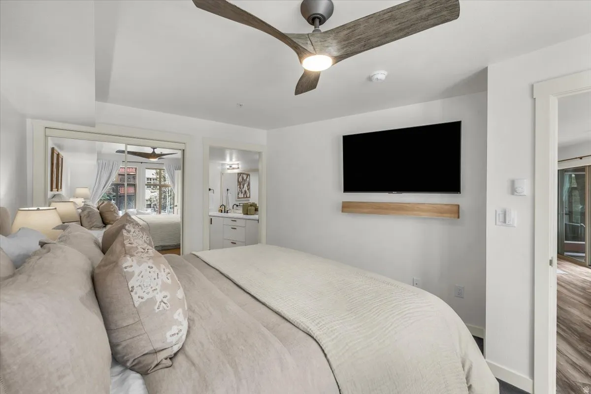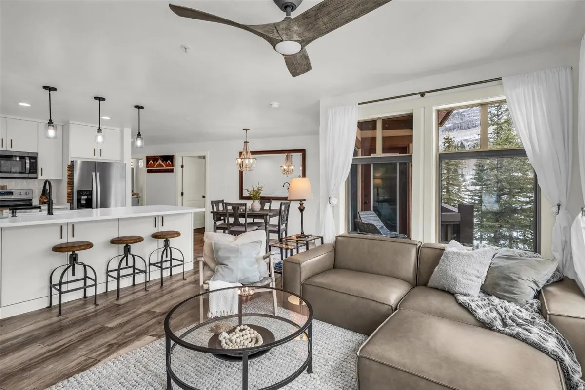 Rarely available 2 bed/ 2 bath Solitude condo located in Eagle Springs West. This condo has been updated and remodeled with only the best finishes, touches and style. Freshly painted and styled to give it a comfortable and classy feel. Beautiful living space w/ rock gas fireplace and large windows. Two bedrooms with ensuite bathrooms that have been updated as well. Newer flooring, kitchen cabinets and counters. Stunning Mountain and resort views from your private covered deck. Secure garage parking for one car, two ski lockers and a hot tub for this building only. Club Solitude in the building across from this condo, features the pool and listed amenities. Winter access to the shuttle service to the lower Moonbeam lift and Nordic center. Summer mountain biking, disc golf, live music and a host of annual events. I could go on and on… Square footage figures are provided as a courtesy estimate only and were obtained from county records. Buyer is advised to obtain an independent measurement.