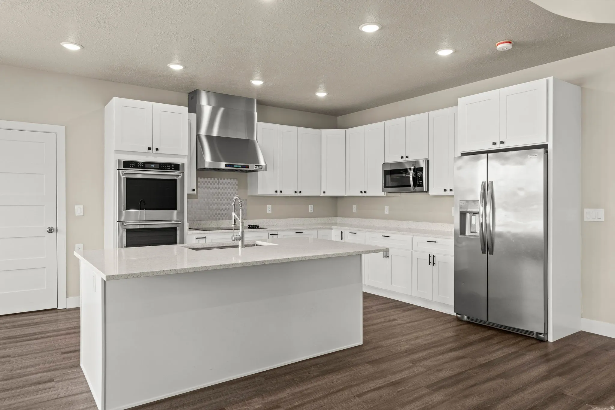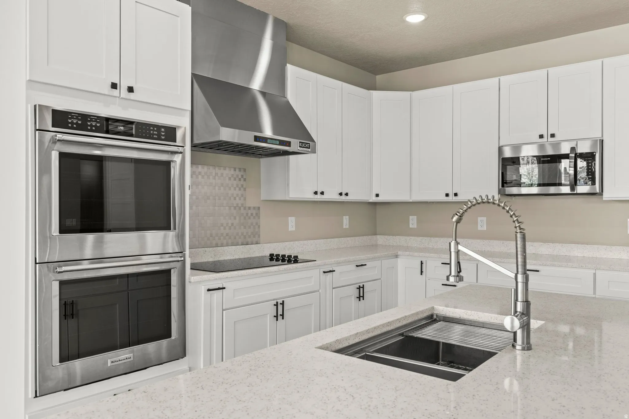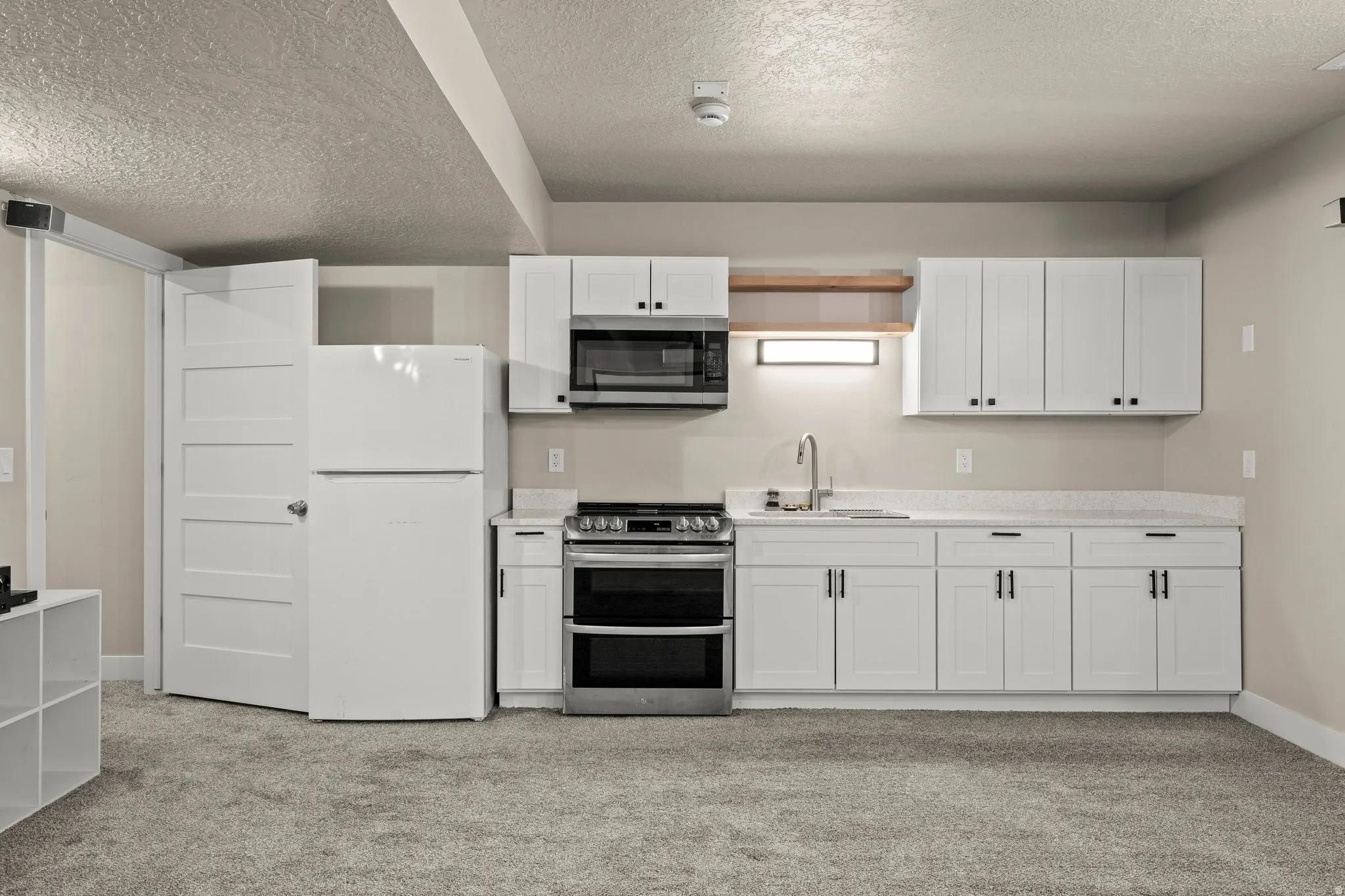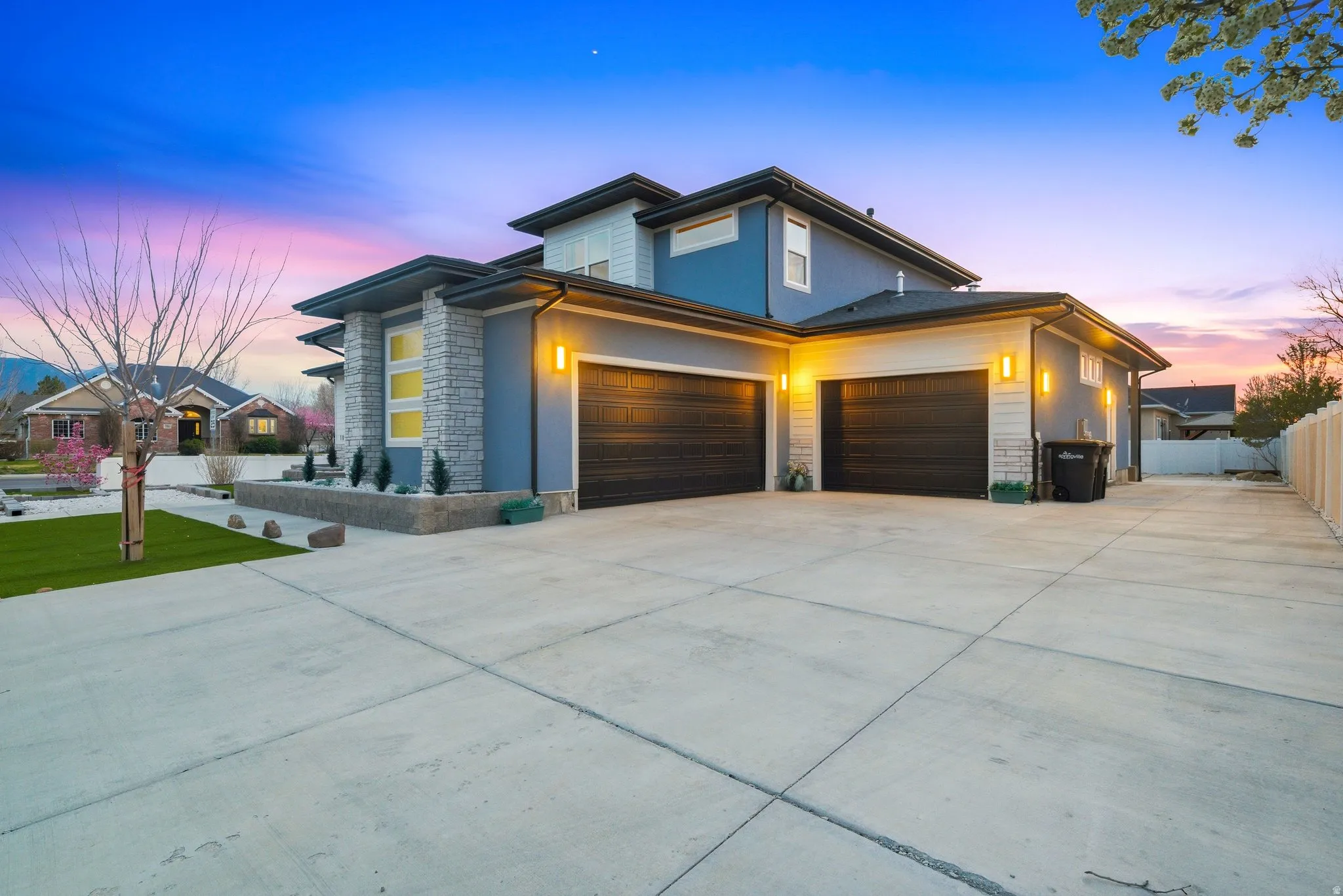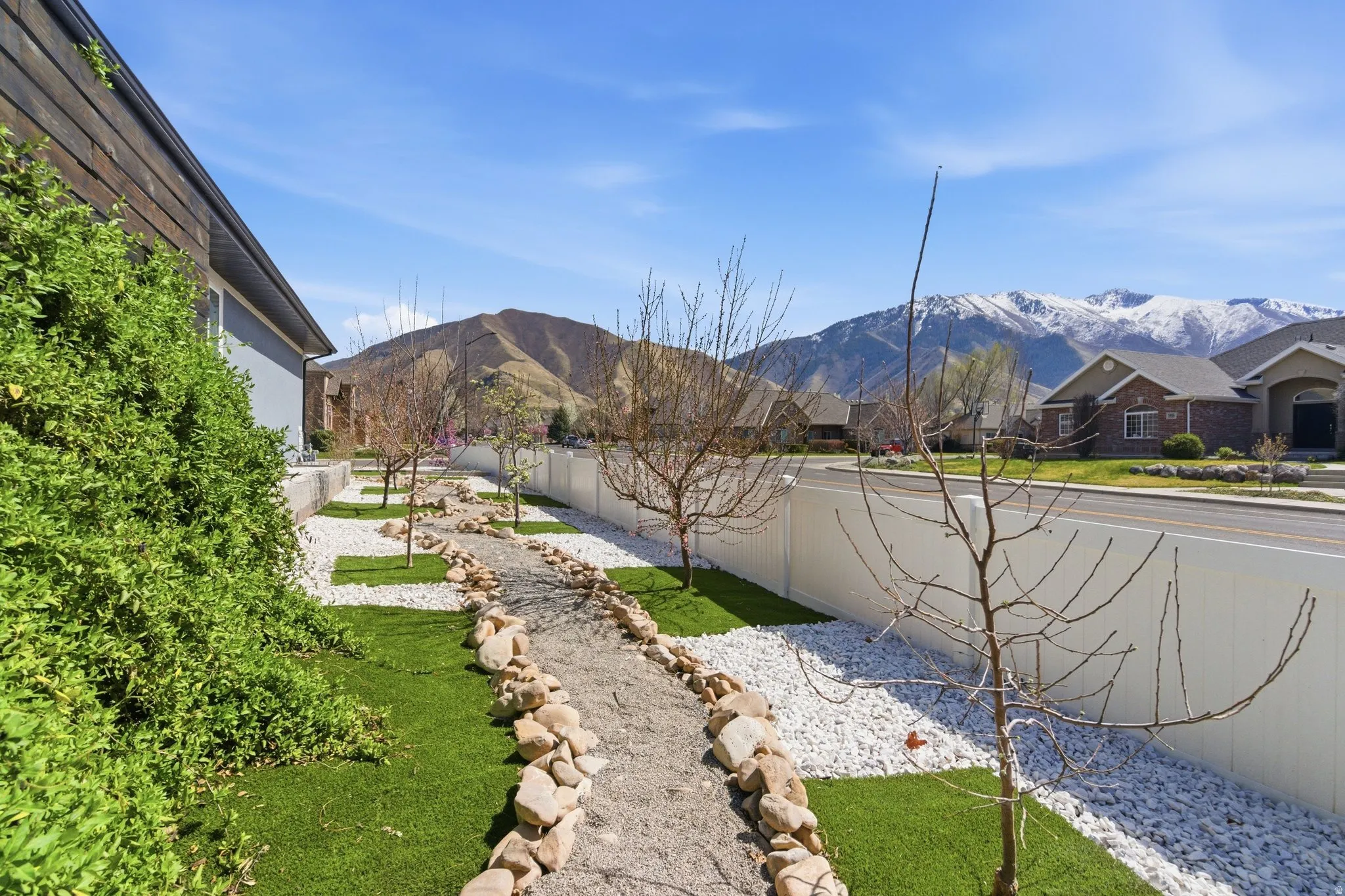 Modern Springville home, with NO HOA, just half a mile from Hobble Creek Canyon, offering rare direct access to one of the area’s best outdoor lifestyles. Ideal for the buyer who wants to ride ATVs, motorcycles, or UTV’s straight from home into the canyon and onto hundreds of miles of trails or bicycle to beautiful Hobble Creek golf course on dedicated path but still be convenient to city life. Within walking distance to Hobble Creek Park and Bartholomew Pond where you can fish, swim, and are able to see trout in the clear water, but still within 15 minutes of BYU, Costco, Sam’s Club, Home Depot, Magleby’s, and both Spanish Fork and Utah Valley hospitals. 10 min walk to new Springville High School. This thoughtfully designed home was intended to be the seller’s forever home, and its quality, upgrades, and convenience show throughout. Features 9-foot ceilings on the main and upper floors, a vaulted ceiling in the main-floor family room, and a 10-foot ceiling in one upstairs bedroom. Custom staircase railing adds style and character. Quartz countertops throughout all kitchens and bathrooms. Spacious kitchen includes double KitchenAid ovens, an 800 CFM vent hood, gas-plumbed range, soft-close cabinet hinges, and a huge cantilevered pantry over the garage that stays cool year-round, plus its own HVAC duct for added summer cooling. The primary suite includes a large soaking tub, European-style doorless shower, dual sinks, an oversized walk-in closet with makeup table, and an electrical outlet by all toilets for a bidet. Main laundry room offers space for a washer, dryer, and two refrigerators and sink to clean up in after hitting the trails. Zoned furnace allows each floor to be heated separately. Cat-5 to all rooms adds modern convenience. Basement family room is designed as a true theater space with an extra-insulated ceiling using Isoclips, dual sheetrock and sound-dampening glue; RSL, Polk and Sony 7.1 surround speakers and Sony projector are included with Onkyo receiver. Basement also features a second kitchen, exterior entrance and 2 bedrooms with huge closets offering excellent flexibility. The exercise area features a squat rack, bar, bench, and treadmill, completing the home’s well-designed layout. Over 900 sq/ft of garage space is exceptionally well equipped with wiring for four more 220V plugs in addition to the two Level 2 Tesla chargers, which include CCS adaptor and NACS enabling fast charging of any EV. Pegboard workstation in the third-car bay is included, and the third-car bay is over 25′ long and 15′ wide so feel free to park your crew cab long bed inside. RV parking runs along the north side of the home and connects to concrete pad in the back for parking more toys. Gas bibs are installed in the main-floor family room and upstairs loft for a future gas fireplace or heater and also included on patio with Blackstone griddle for big family cooking and parties. All rooms are pre-blocked for ceiling fans. The yard is designed for people who’d rather spend their Saturdays having fun! It’s the perfect size to be ultra low maintenance but still have elbow room for a place to play catch and a fire pit. It is xeriscaped with artificial turf, rock beds, and mature live trees, which creates a beautiful, nearly maintenance-free exterior. A growing honeysuckle privacy wall enhances the south side yard and brings in the hummingbirds. Fruit trees include 2 apple trees, 2 peach trees, 2 cherry trees, and 1 pear tree, each with its own dedicated drip line. Eaves are wired for Christmas lights, making seasonal decorating or installation of year round holiday lights easy. Square footage figures are provided as a courtesy estimate only and were obtained from an appraisal. Buyer is advised to obtain an independent measurement.