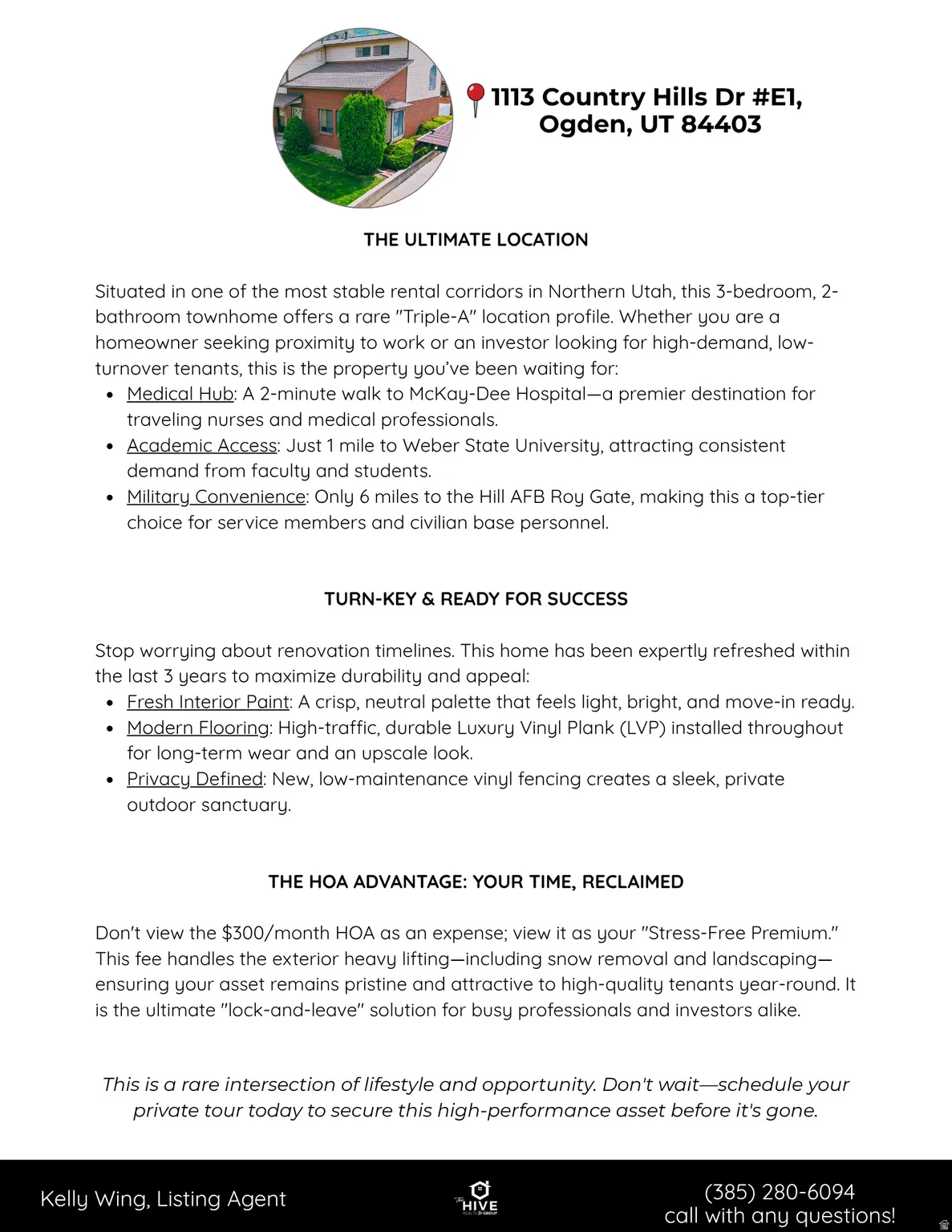 In a zip code where townhomes are at a limited inventory, this 3BR/2BA gem is prime. Nestled near McKay-Dee Hospital (2-min walk), Weber State (1 mi), and Hill AFB (6 mi), it’s a high-demand rental magnet. Freshly painted walls in a bright, neutral palette create a clean canvas that makes the space feel airy and inviting. Underfoot, durable new LVP flooring has been installed throughout high-traffic areas, ensuring the home handles daily life-or tenant turnover-with effortless grace. Step outside to find a newly added vinyl fence, which transforms your private outdoor space into a sleek, low-maintenance sanctuary. The community has a large pool and the HOA taking care of the outside maintanance year round offers a “lock-and-leave” lifestyle that is currently in short supply.