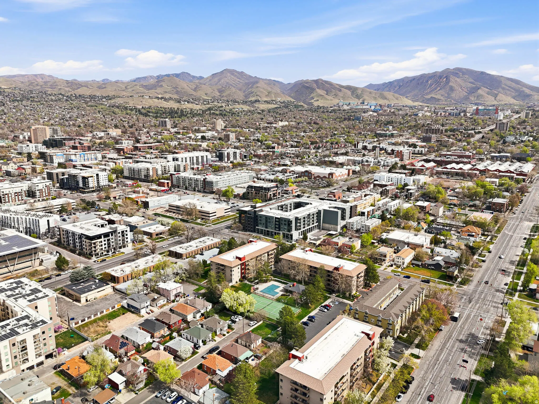 Downtown Living, Elevated. Welcome to one of downtown Salt Lake City’s most sought-after addresses – where the energy of the city meets the serenity of the mountains. This stunning 2-bedroom, 2-bathroom condo has been thoughtfully updated with new countertops, kitchen appliances, new flooring, and crisp designer paint, creating a move-in ready retreat that feels brand new. Step onto your private east-facing balcony – freshly finished with newer Trex-style decking – and drink in sweeping Wasatch views, a rare luxury in this price range. Inside, every detail has been curated for the discerning urban professional who refuses to compromise on quality or convenience. The amenities deliver: pool, tennis and pickleball courts, coveted garage parking with additional storage, and digital keypad entry – all just steps from your door. Google Fiber connectivity keeps you seamlessly connected. Water, sewer, and garbage are covered, so you can focus on living, not logistics. Positioned at 530 S. 400 E., you’re moments from the finest dining, nightlife, arts, and trails the city has to offer. 896 square feet of pure downtown sophistication.