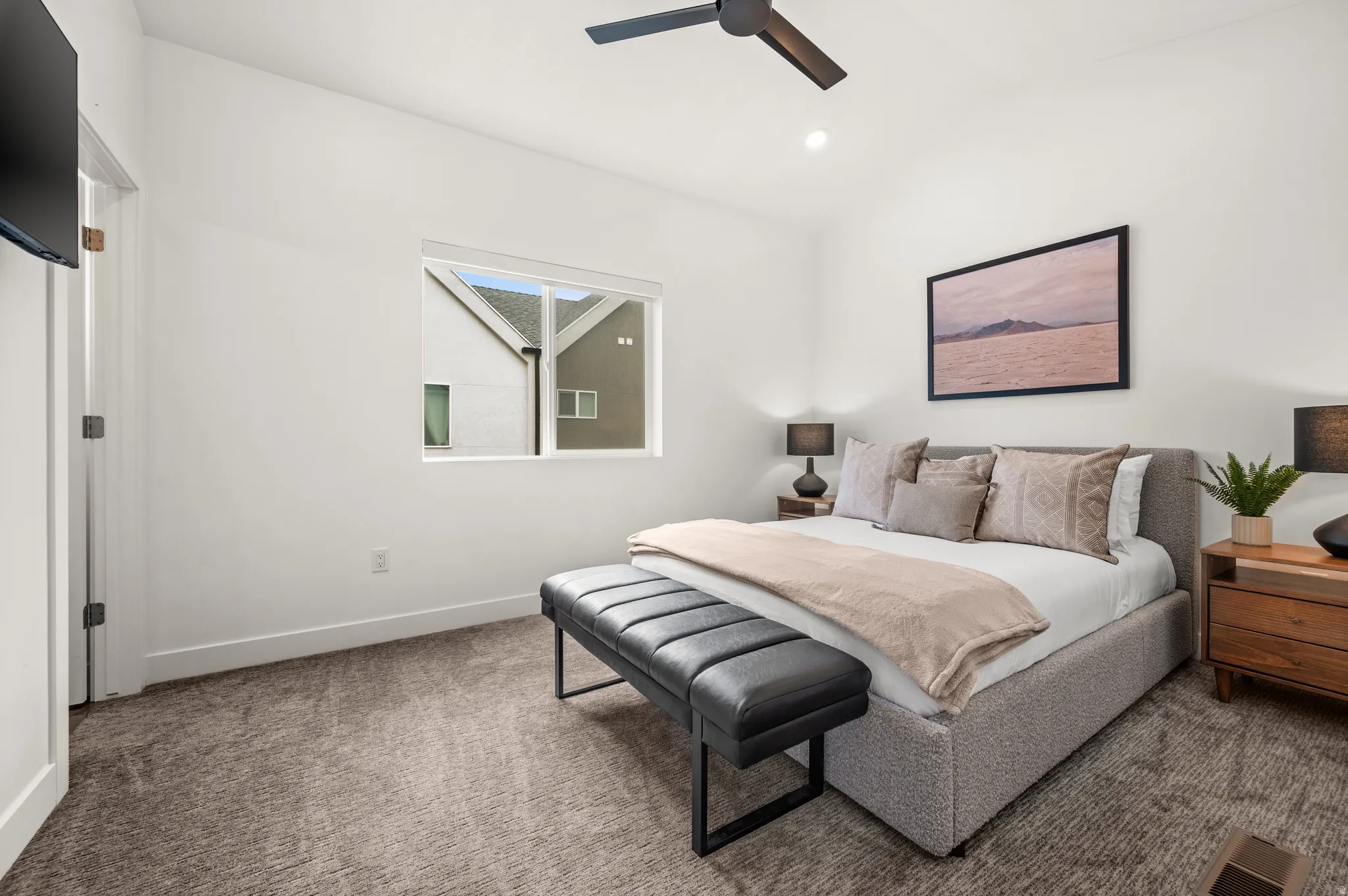 Feels new! Built in 2024, this modern, luxury townhome is located in the RARE NIGHTLY RENTAL APPROVED ZONE (MU-5). Thoughtfully designed for urban living with two upstairs primary suites featuring vaulted ceilings, walk-in closets, and spa-inspired en-suite bathrooms, plus a ground-level third bedroom ideal for a home office, guest room, or flex space. The open-concept main level offers waterproof LVP flooring, half bath, laundry, and a chef’s kitchen with European-style soft-close cabinetry, matte quartz countertops, LG stainless steel appliances, gas range, vented range hood, oversized island, and large walk-in pantry. A rare two-car garage adds convenience and storage. Built for efficiency with a tankless water heater and 95% efficient furnace. CAT6 wiring and dedicated Google Fiber port included. Featured in the Salt Lake Parade of Homes. HOA and zoning allow nightly rentals. (Airbnb earnings data available. Furnishings negotiable.) Welcome to Townes at Marmalade.