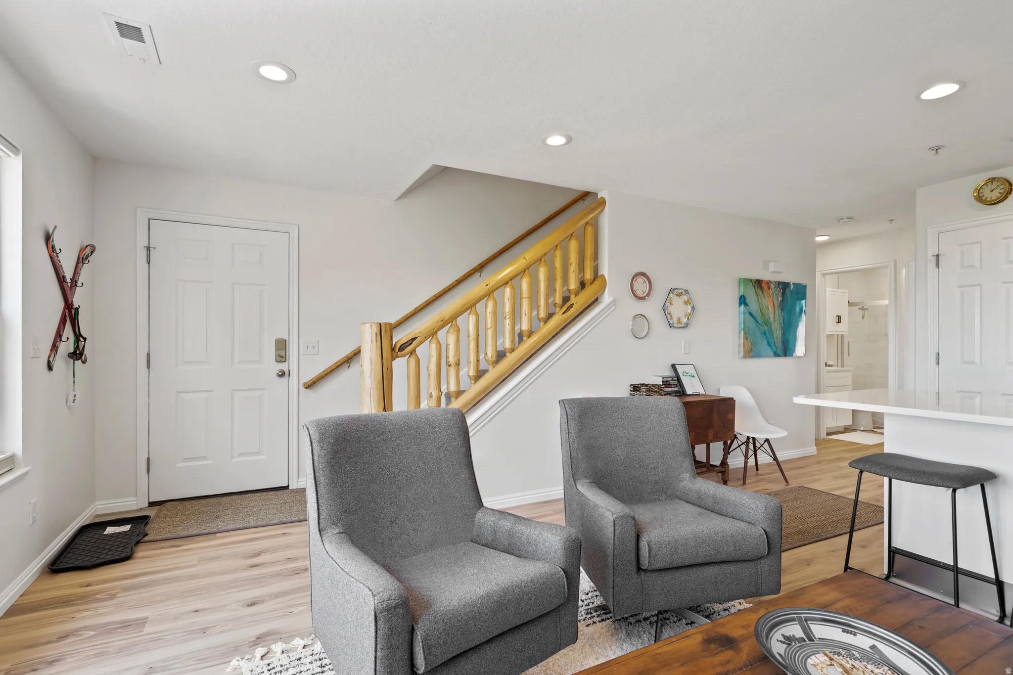 Don’t miss out on this beautiful, fully furnished 2BR/2BA condo that was completely remodeled in 2023. With all new cabinets, countertops, appliances, flooring, fireplace, and bathrooms. This bright, airy condo set itself apart from other units in the community. The front and back balconies have breathtaking views of the mountains and Pineview Reservoir. The upper floor features a large primary bedroom and full bathroom, with laundry room and additional storage. The ski bus stop at up the road that will take you to Powder Mountain, and you are just minutes from Nordic Valley and Snowbasin ski resorts by car. Enjoy the summer on Pineview reservoir, and miles of hiking and biking trails. Or just relax at the community pool, hot tub, and clubhouse. Moose Hollow is also zoned for nightly or long-term rentals.