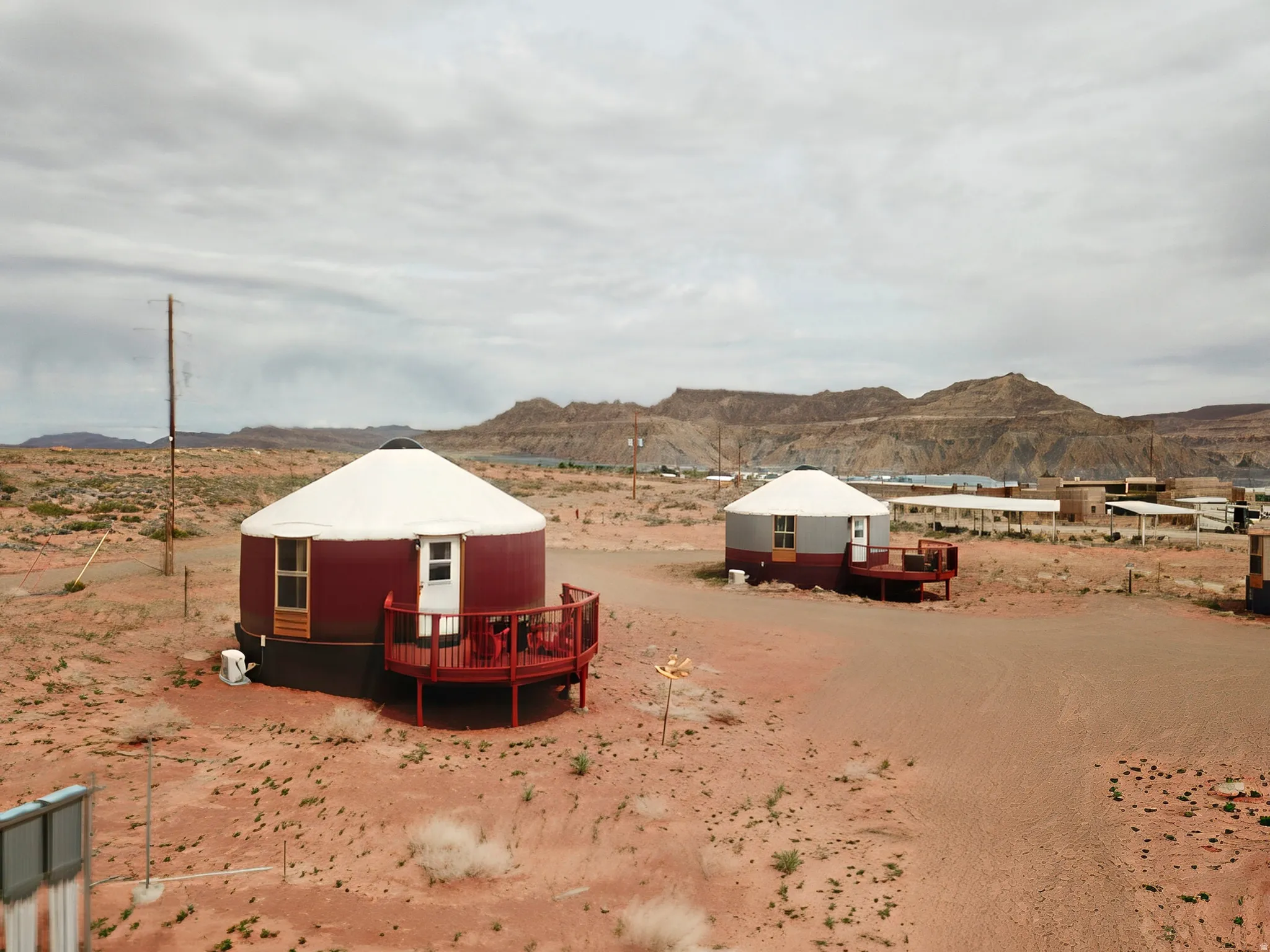 NOMAD YURTS, in Big Water, Utah. Discover a rare investment opportunity just minutes from Page, AZ , near the stunning shores of Lake Powell, the Big Water Visitor Center, and a world-renowned region. Situated on 2.93 acres, this unique property features 4 fully finished, turnkey luxury yurts, each thoughtfully designed for comfort and style. Every 450 sq ft yurt includes high-end furnishings, a full bathroom, granite countertops, septic and water connections, and modern amenities such as heating, air conditioning, and WiFi. Three of the luxury yurts are equipped with electric fireplaces, and all 4 units come fully furnished with refrigerators, microwaves, coffee makers, farmhouse sinks, and convenient kitchenettes. Built with a durable combination of wood framing, concrete, aluminum, and canvas, these luxury yurts offer both charm and longevity. The property is fully prepped for expansion, with infrastructure already in place to accommodate up to 12 total yurts. Septic sewer service laterals, electric, and culinary water lines have been run to future sites, and building pads are already prepped and prepared, making it easy to scale and maximize your investment. There is material for a fifth yurt on site, need to be built. The yurts have also been listed on short-term rental sites, demonstrating strong potential as a rental or glamping destination. With its prime location, existing infrastructure, and expansion readiness, this is an exceptional opportunity for investors looking to create a unique hospitality experience in a highly desirable area. THIS LISTING IS ALSO FEATURED ON THE MLS UNDER COMMERCIAL. MLS# 2149891 Please visit the Nomad Yurts website https://nomad-yurts.com