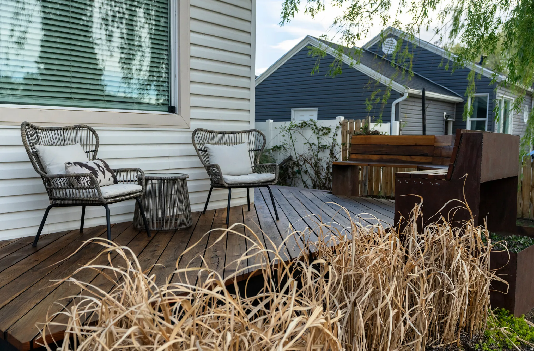 Open House Saturday, 4/25. Property not available for showing until Saturday 4/18. Welcome to low-maintenance, high-quality living in Liberty Wells. This is a charming, design-forward bungalow on one of Salt Lake’s most beloved quiet streets where the willow tree sways, the neighbors wave, and everything you need is minutes away. Meticulously maintained by the same owner since 2017, this 650 sq ft gem proves that great design doesn’t need square footage. The open-concept layout is bathed in natural light and styled with intention – exposed brick, live-edge wood details, a built-in office nook, and warm, organic textures throughout. All appliances included (refrigerator, stove, washer/dryer), and the owner is willing to sell the home fully furnished – move right in and start living. Step outside onto the crown jewel of this property: a stunning redwood deck built in 2021 by expert craftsmen, featuring a custom-designed steel bench with integrated succulent planters – all beneath the canopy of a magnificent willow tree. The backyard is gravel-landscaped for low maintenance and perfect for entertaining, with string lights and a picnic area already in place. The entire yard has been lovingly tended with xeriscaping and well-established drought-tolerant plants, keeping water bills low and curb appeal high year-round. Additional highlights include central A/C installed in 2021, central heat, an attached garage, a sprinkler system, and consistently low monthly utility costs – an efficient home in every sense. The location is simply unbeatable. One mile to the Sugarhouse hub and Liberty Park. Walkable to restaurants, coffee shops, and TRAX. A short ride along the 300 East bike lane drops you straight into downtown. Within one mile of Trader Joe’s, Whole Foods, and Smith’s. Quick access to both I-15 and I-80. You get the energy and convenience of Sugar House, Liberty Wells, South Salt Lake, and downtown – without sacrificing a moment of peace and quiet. Whether you’re a first-time buyer, a couple, or someone who simply wants a beautiful, efficient, well-located home, 314 E Redondo is ready to deliver. Seller will sell furnished – inquire for details.