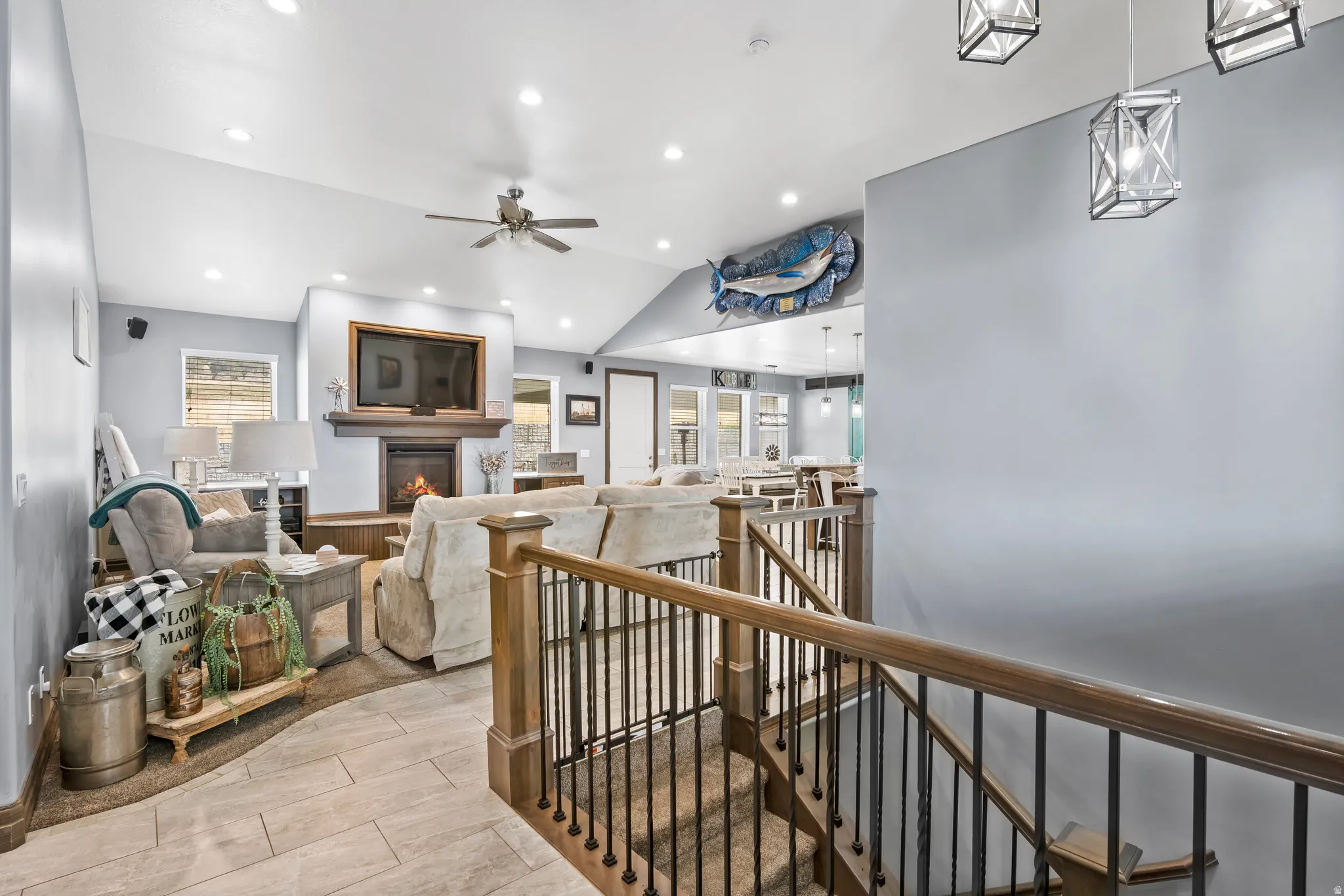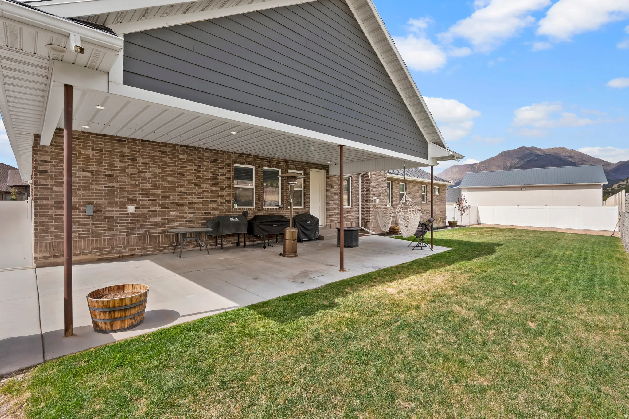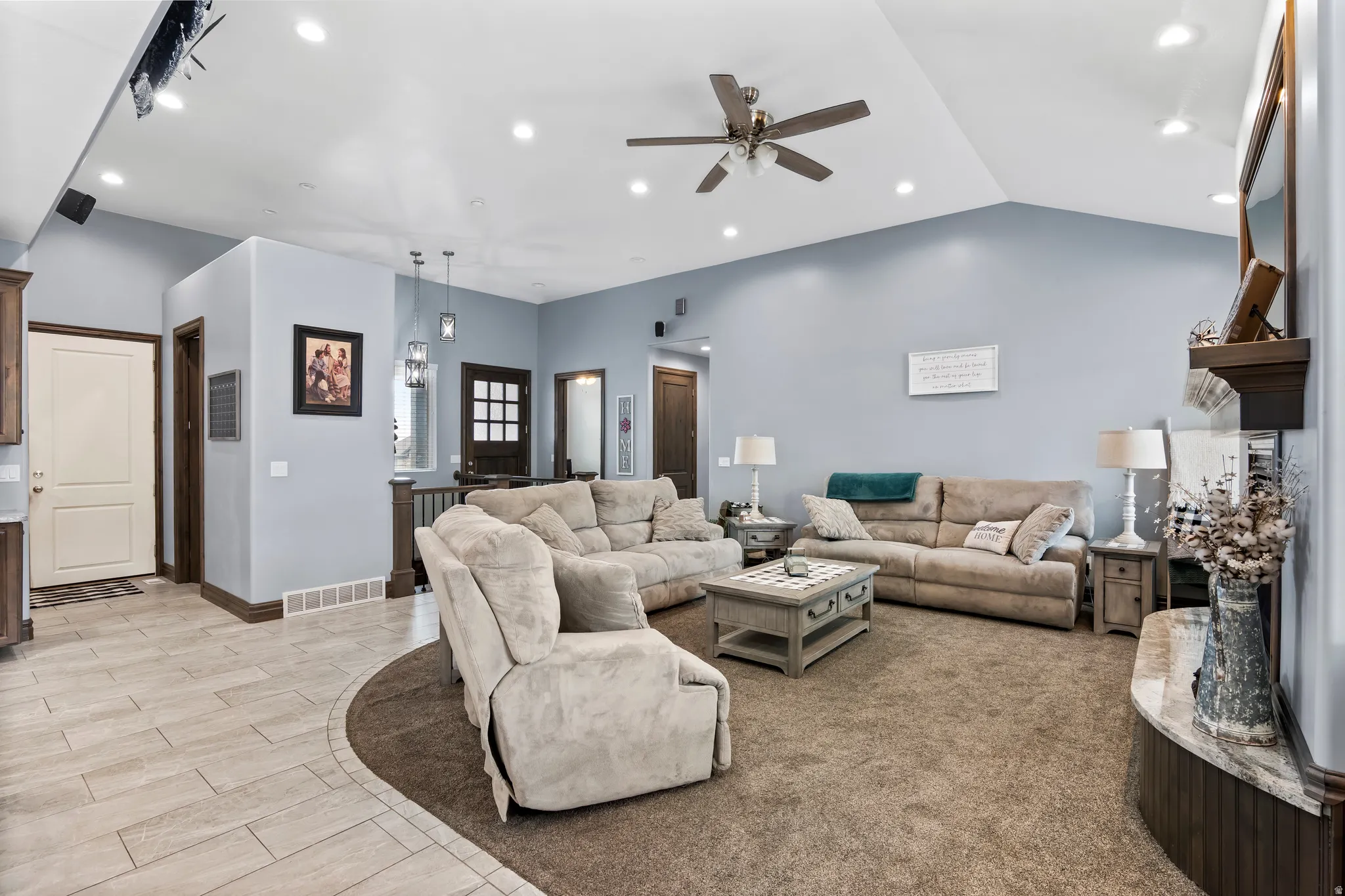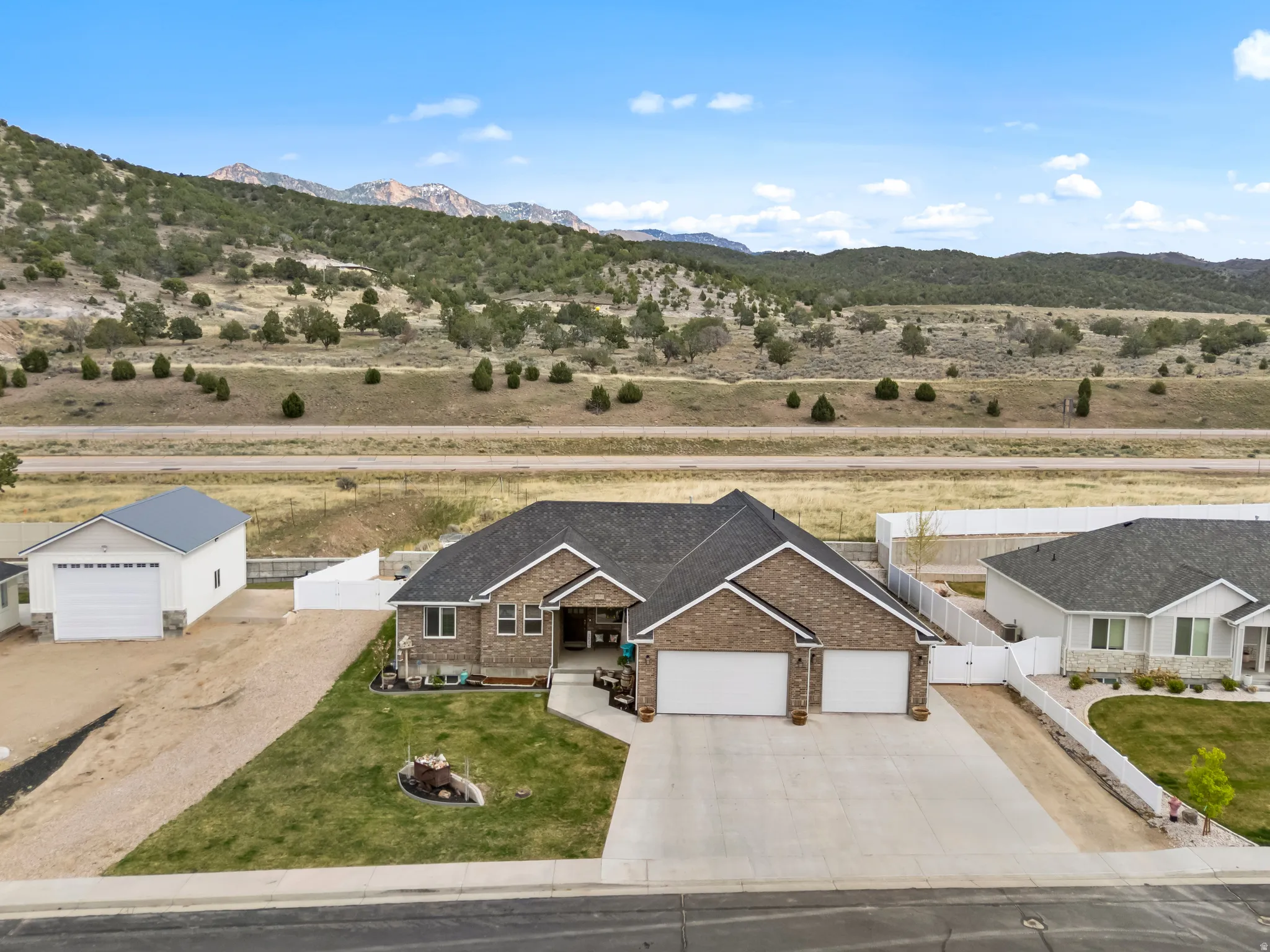 Custom all brick rambler with quality craftsmanship and a layout that just makes sense. Vaulted ceilings on the main floor and 9′ ceilings in the basement create an open, inviting feel throughout. The main level features an open concept family room and kitchen designed for gathering, complete with an 8′ island, granite countertops, large space for table, double ovens, oversized commercial fridge, 6-burner range with pot filler, and a large walk-in pantry. The basement offers a standout mother-in-law apartment or studio option with its own separate entrance access through garage and separate laundry. Plumbing is already in place for a kitchenette, and a new 3/4 bath is currently being installed, making this an ideal setup for multi-generational living, guests, or added income potential. The primary suite features a private ensuite with double sinks, a separate oversized tub and shower, with a spacious walk-in closet. You’ll also love the oversized laundry room with storage, folding counters, and a utility sink, along with a functional mud room just off the garage for the whole family. Additional basement space includes three bedrooms, a full bath with double sinks, walk-in closets, a family room with a kitchenette area, includes electric stove and refrigerator, setup for cozy woodburning stove. Plenty of storage throughout. Outside, enjoy a fully fenced and landscaped yard with a sprinkler system, 30 amp RV plug, XL covered patio with hot tub hookups and covered porch-perfect for taking in both sunrise and sunset views. The property also features a three-car garage with an extended-length bay offering extra depth for vehicles, toys, or workspace, along with RV parking and curb and gutter.