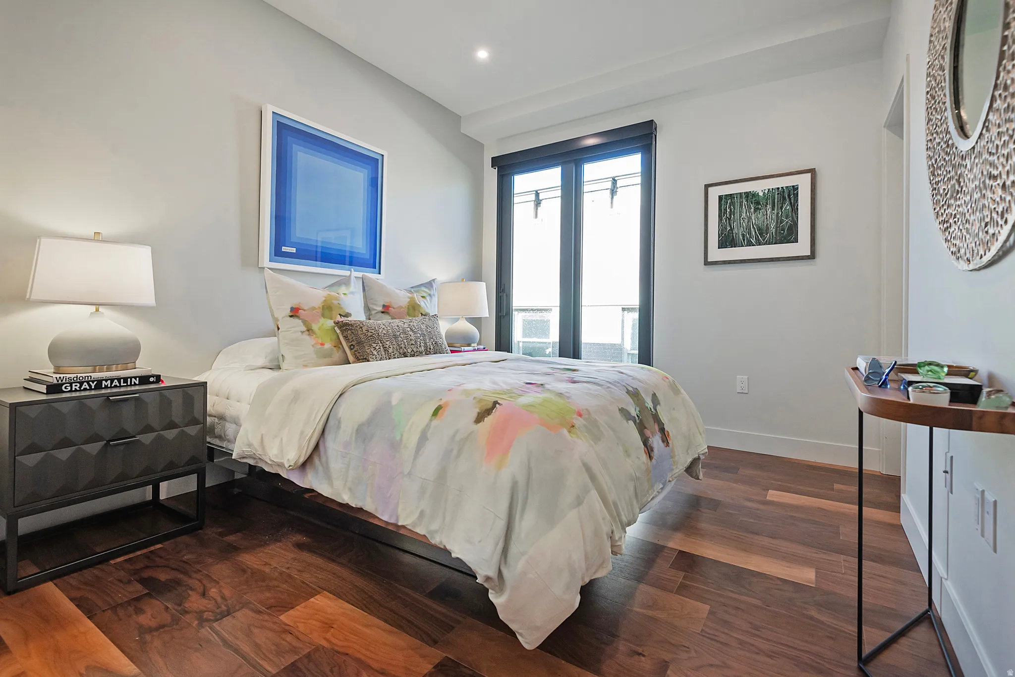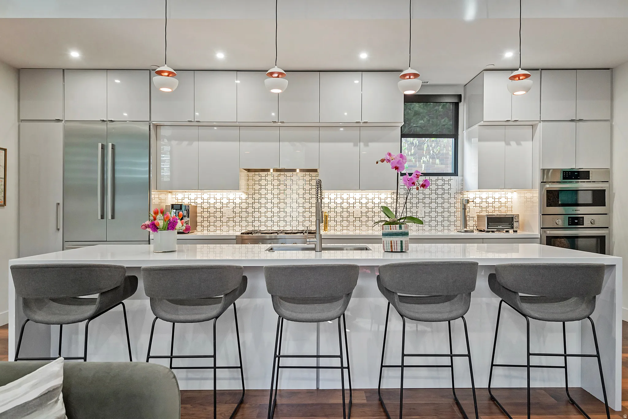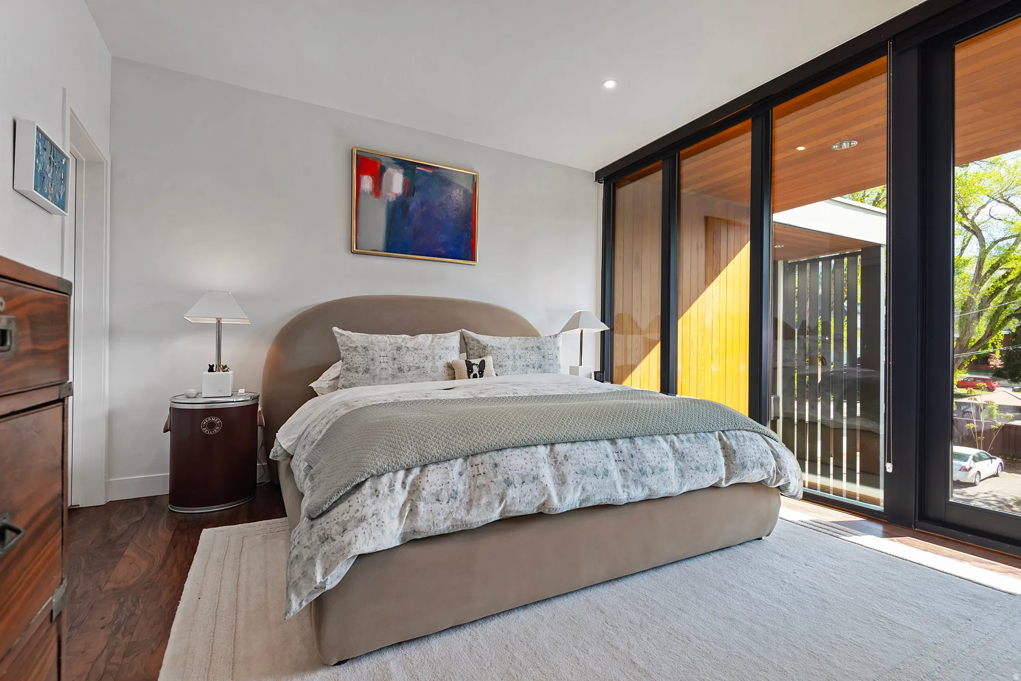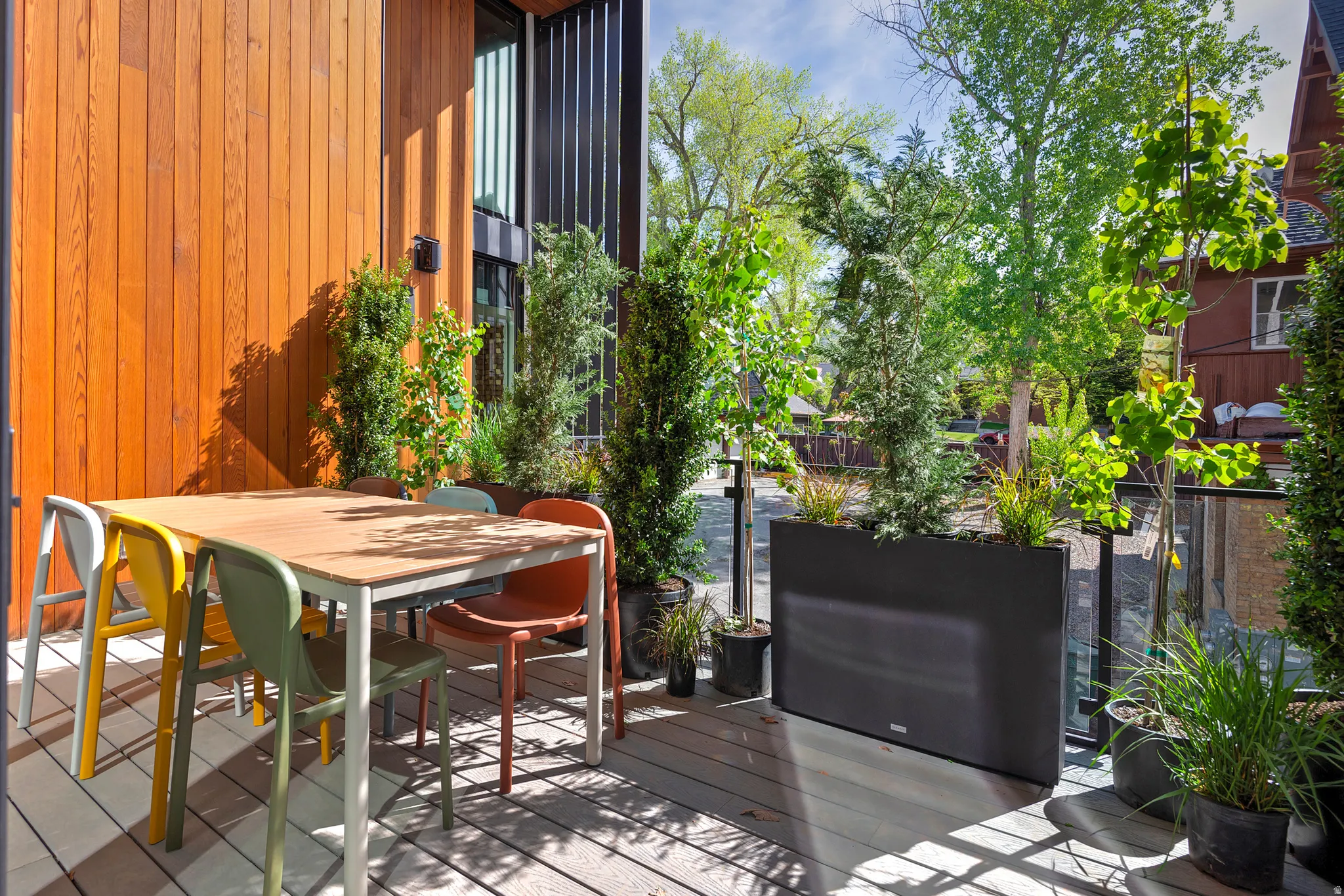 Modern luxury townhome set along the iconic Historic South Temple, offering a blend of architectural design and urban living just minutes from the University of Utah, downtown, shopping, and fine dining. Built to commercial standards, the residence is defined by expansive floor-to-ceiling Windsor windows that flood the home with natural light, engineered walnut flooring, and a thoughtfully designed open layout. A true statement piece, the custom 16-gauge stainless steel floating staircase features a perforated design inspired by the Wasatch Mountains. The chef’s kitchen is appointed with a premium Bosch appliance package, commercial-grade Mirlux high-gloss cabinetry, quartz countertops, and a marble and stainless-steel patterned backsplash. Floor-to-ceiling glass doors extend the living space to a private 163 sq ft deck, wrapped in cedar for a warm, modern contrast. The upper level offers a well-appointed primary suite, secondary bedroom, and full bath. The crowning feature is the expansive rooftop deck, featuring over 590 sq ft of elevated outdoor living space designed for both relaxation and entertaining, complete with Trex decking, turf, and a steel pergola. All while offering sweeping mountain, capitol, valley, and sunset views. Additional high-end features include a Lutron lighting system, brand-new high-efficiency HVAC, an in-line water heater, enhanced sound insulation with 16″ partition walls between units, and a garage wired for electric vehicles.