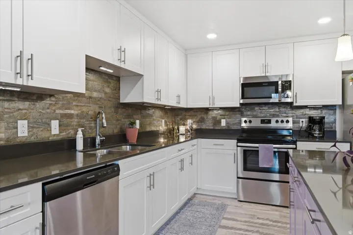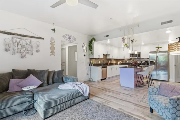 Well cared for condo in a convenient location! Open floor plan with 3 spacious bedrooms and 2 bathrooms. Kitchen features white cabinetry, backsplash, and stainless steel appliances. Quartz countertops throughout. Accent Walls. Tankless water heater and high-efficiency furnace. Laundry room with cabinets for storage. Private balcony. HOA amenities include a community pool and spa, playground, dog park, and a clubhouse with kitchen and great room. Sq. footage per tax data records. Property facts provided as a courtesy; Buyer to verify all information.
