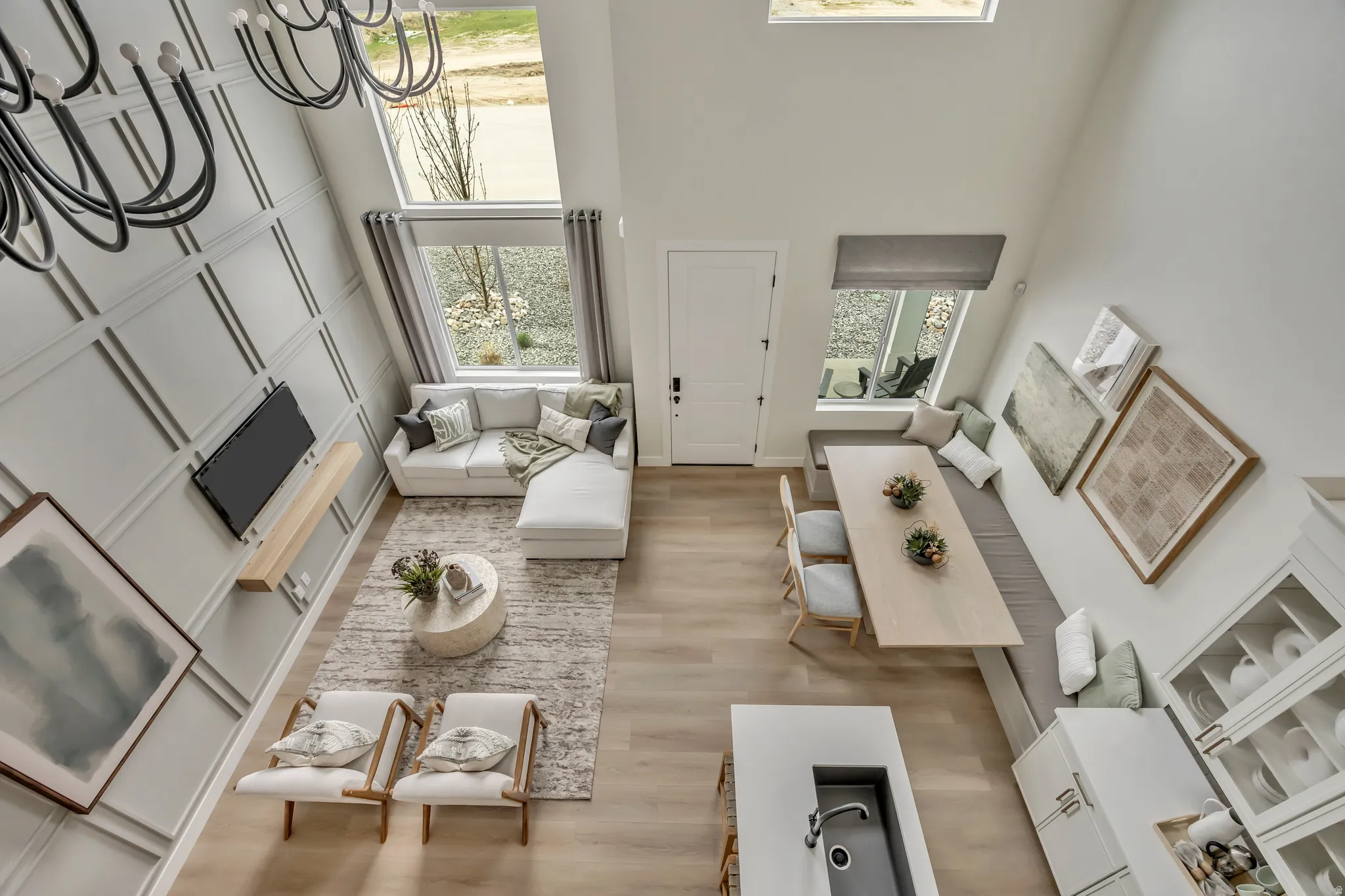 The Washington is a three-story townhome with 4 bedrooms, 2.5 baths, and a smart, open layout that makes family life easy. At 1,982 sq. ft., you’ll find room to gather on the main level with an open concept great room, dining nook, and a spacious kitchen island with quartz countertops, soaring ceilings letting in abundant light and connecting you to the rest of the home. A peaceful primary retreat on its own floor, and a flexible loft that adapts to work, play, or guests. A convenient laundry room on the bedroom level – 2-car garage and smart storage throughout. *Pictures are of a finished home of the same floor plan, and the available home may contain different options, upgrades, and exterior color and/or elevation style. Square footage figures are provided as a courtesy estimate only and were obtained from building plans*